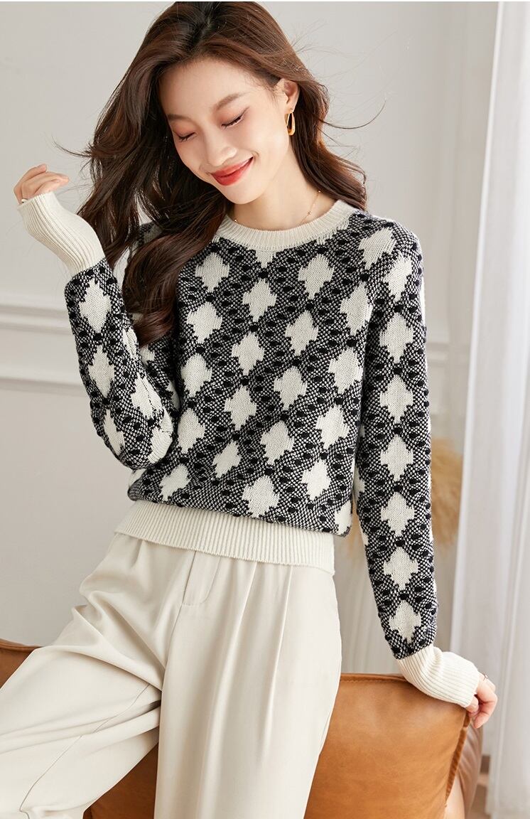 ジャカード ウール セーター レディース ピュア ウール 秋 冬 ボトムス セーター ショート スタイル M L トップス 袖あり かわいい 大人可愛い きれいめ シンプル カジュアル 大人 上品 おしゃれ お洒落 大人可愛い 大人女子 キュート 春 夏 秋 10代 20代 30代 レディース 女性用 女の子 通勤 学生 通学 デート お出かけ 女子会 お泊まり 休日 パーティー イベント 旅行 普段使い ファッション コーデ スタイル インスタ映え