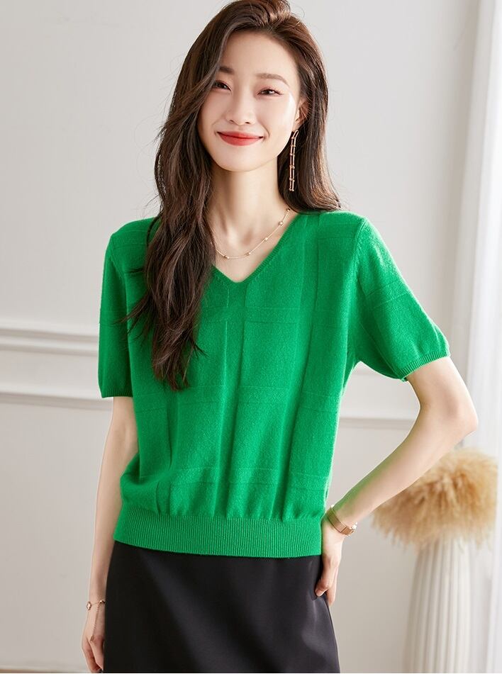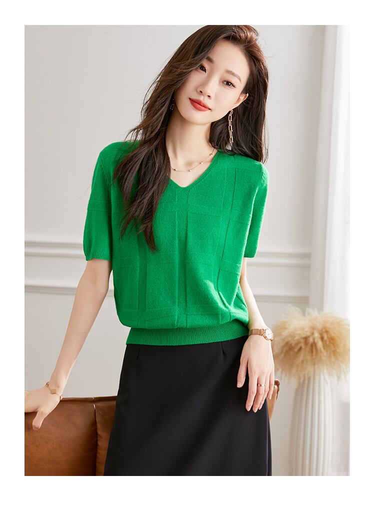 緑 レディース v ネック 半袖 ウール セーター 女性 秋 薄手 ニット シャツ ショート tシャツ トップ グリーン フリーサイズ トップス 袖あり かわいい 大人可愛い きれいめ シンプル カジュアル 大人 上品 おしゃれ お洒落 大人可愛い 大人女子 キュート 春 夏 秋 10代 20代 30代 レディース 女性用 女の子 通勤 学生 通学 デート お出かけ 女子会 お泊まり 休日 パーティー イベント 旅行 普段使い ファッション コーデ スタイル インスタ映え