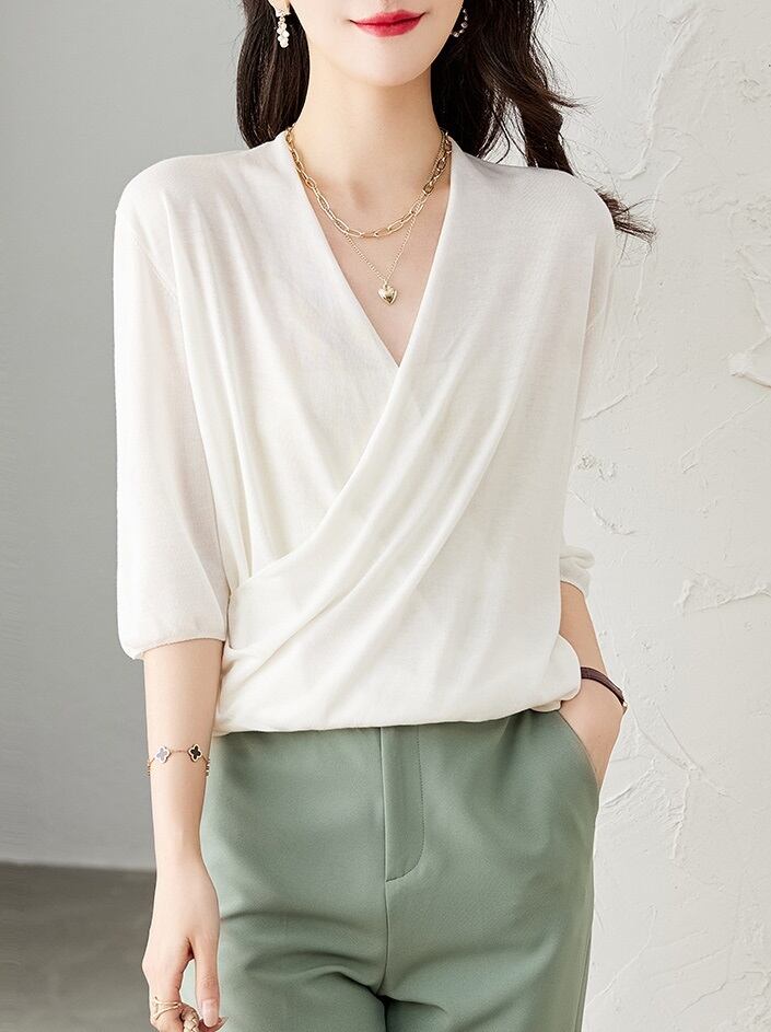 クロス v ネック テンセル 半袖 tシャツ 女性 夏 薄い セーター 半袖 スリム フィット ショート トップ ホワイト ベージュ フリーサイズ トップス 袖あり かわいい 大人可愛い きれいめ シンプル カジュアル 大人 上品 おしゃれ お洒落 大人可愛い 大人女子 キュート 春 夏 秋 10代 20代 30代 レディース 女性用 女の子 通勤 学生 通学 デート お出かけ 女子会 お泊まり 休日 パーティー イベント 旅行 普段使い ファッション コーデ スタイル インスタ映え 色展開