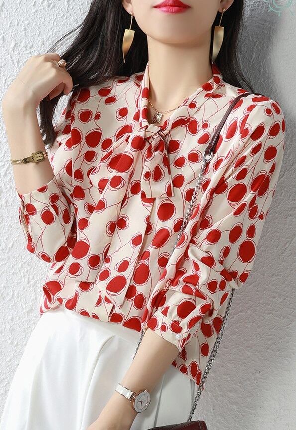 レディース 個性的なデザイン ボウリボン 花柄 シフォンシャツ 女性 春 秋 ドレープ ルーズシャツ 長袖 トップ レッド M L XL XXL トップス 袖あり かわいい 大人可愛い きれいめ シンプル カジュアル 大人 上品 おしゃれ お洒落 大人可愛い 大人女子 キュート 春 夏 秋 10代 20代 30代 レディース 女性用 女の子 通勤 学生 通学 デート お出かけ 女子会 お泊まり 休日 パーティー イベント 旅行 普段使い ファッション コーデ スタイル インスタ映え
