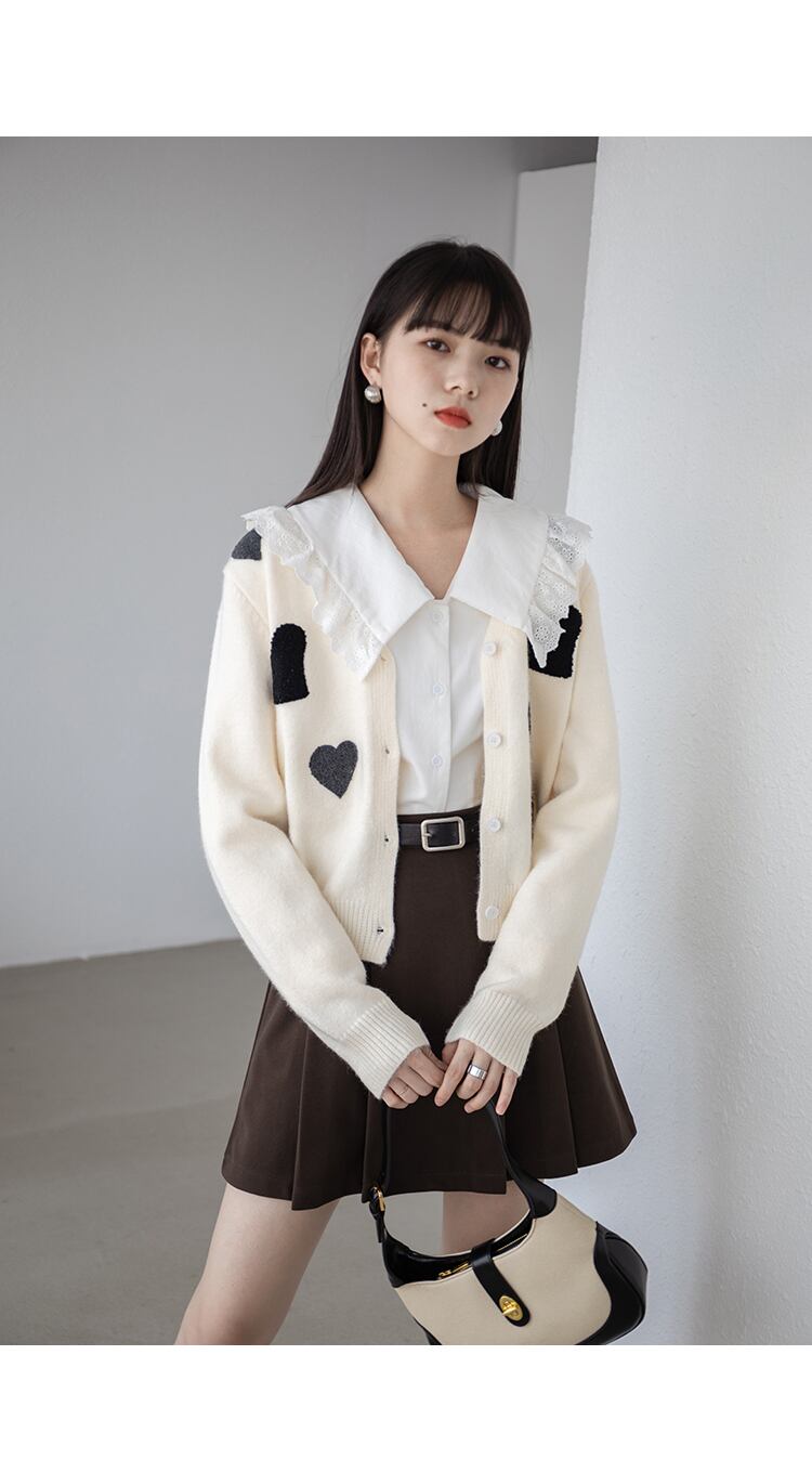 このラブプリントのカーディガンと共に、自信を持ってスタイルを楽しんでください。