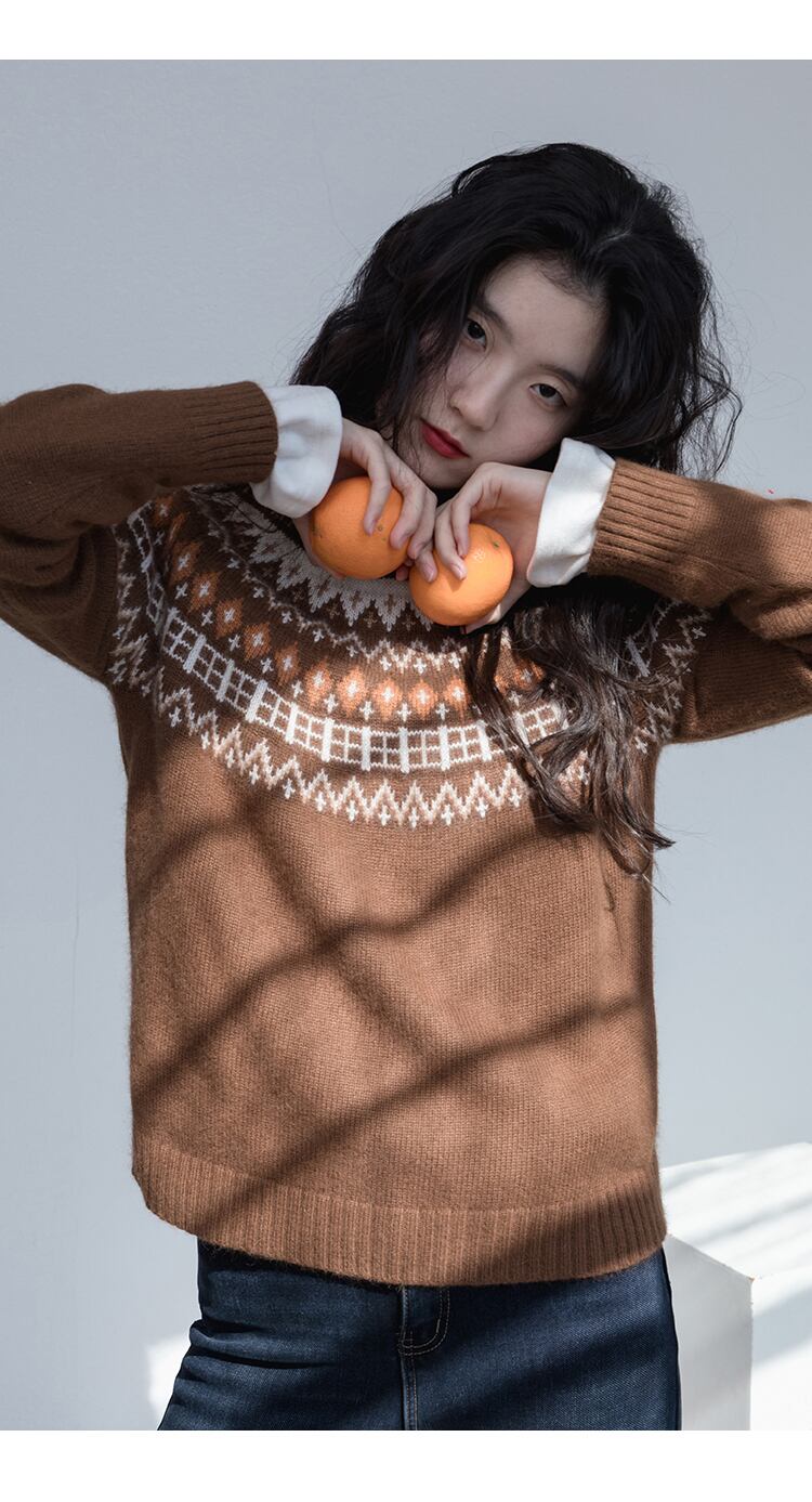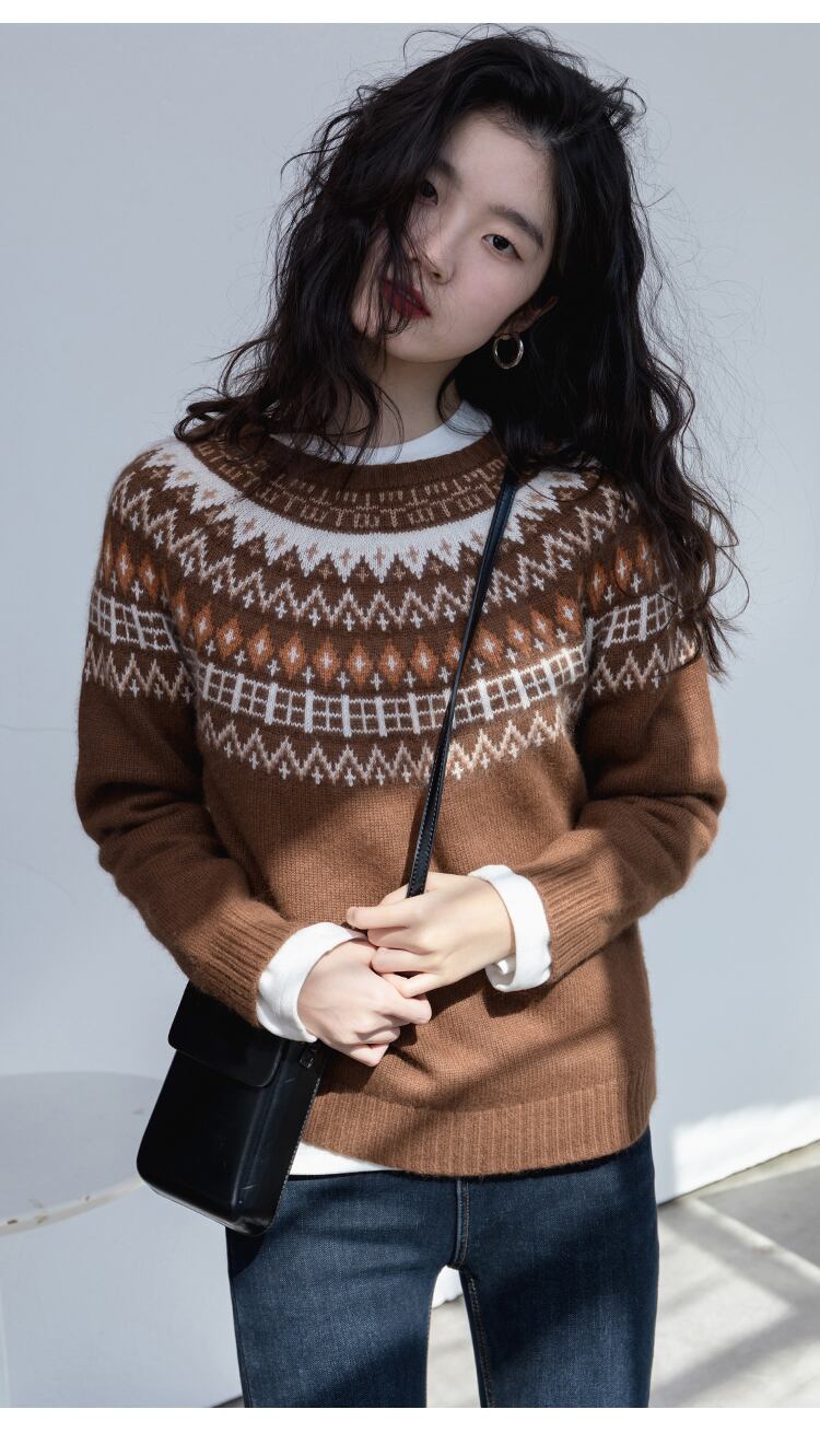 レトロ ラウンドネック プルオーバー セーター 女性 冬 ルーズ ラウンドネック プルオーバー トップ ブラウン レッド フリーサイズ トップス 袖あり かわいい 大人可愛い きれいめ シンプル カジュアル 大人 上品 おしゃれ お洒落 大人可愛い 大人女子 キュート 春 夏 秋 10代 20代 30代 レディース 女性用 女の子 通勤 学生 通学 デート お出かけ 女子会 お泊まり 休日 パーティー イベント 旅行 普段使い ファッション コーデ スタイル インスタ映え 色展開