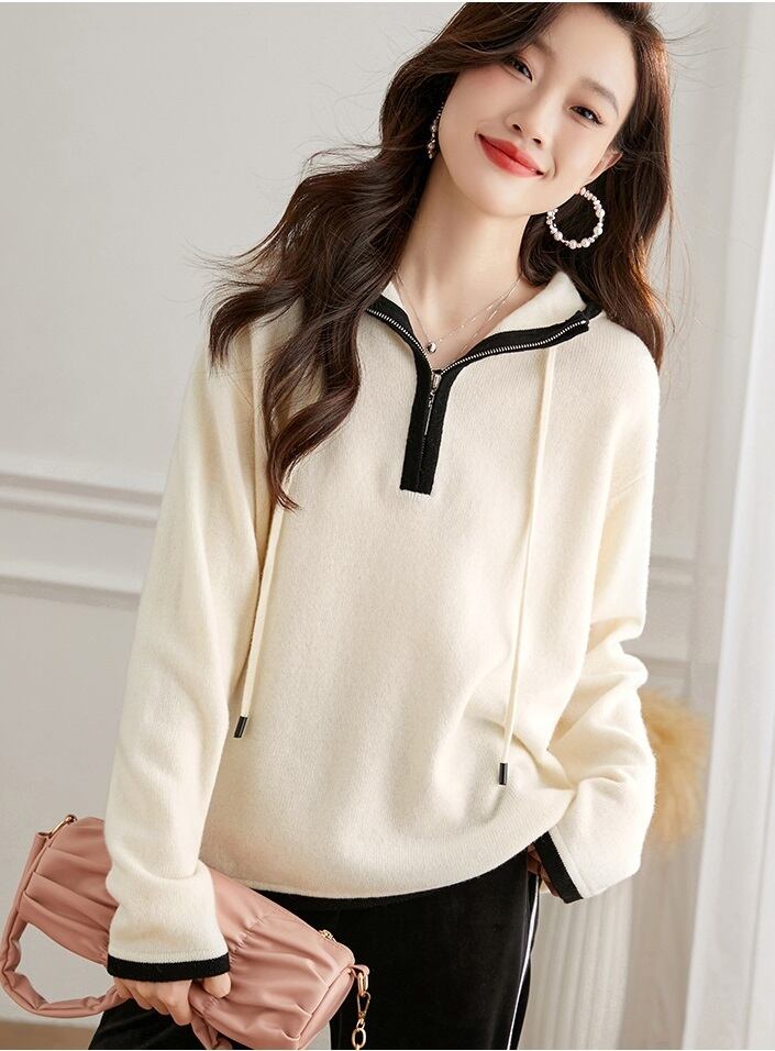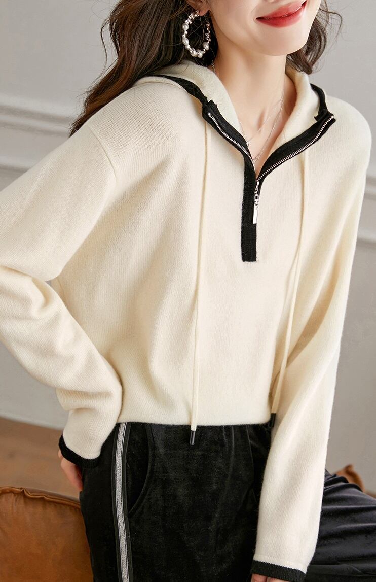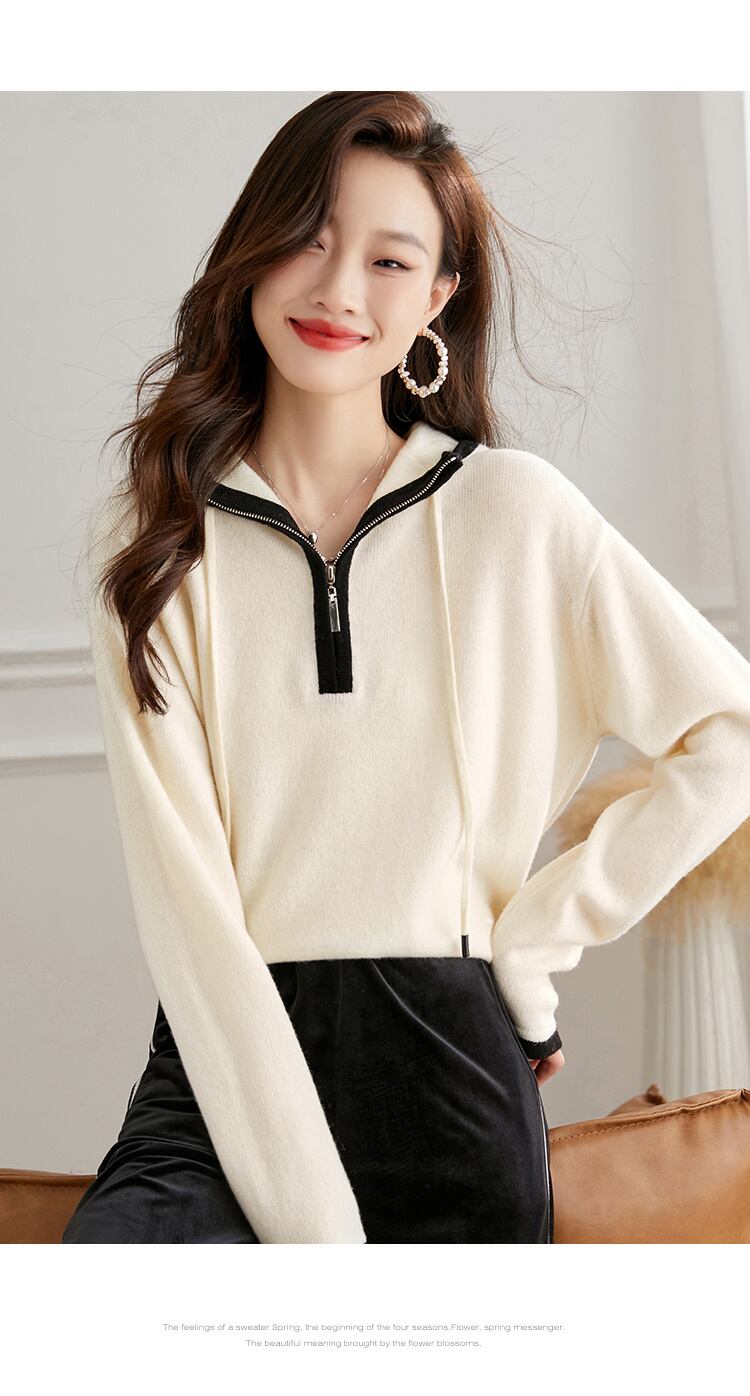 ジッパー フード付き カーディガン 女性 2 秋 デザイン ルース セーター ショート ニット セーター ホワイト フリーサイズ トップス 袖あり かわいい 大人可愛い きれいめ シンプル カジュアル 大人 上品 おしゃれ お洒落 大人可愛い 大人女子 キュート 春 夏 秋 10代 20代 30代 レディース 女性用 女の子 通勤 学生 通学 デート お出かけ 女子会 お泊まり 休日 パーティー イベント 旅行 普段使い ファッション コーデ スタイル インスタ映え