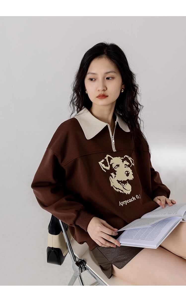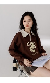 甘いレトロ感漂うカジュアルなアメリカンセーター。ポロ襟が女性らしい印象を与え、秋の季節感を楽しむことができます。ネイビーとブラウンの2色展開で、S、M、Lのサイズ展開もあり、カジュアルからきれいめまで幅広いスタイルに合わせることができます。袖ありのデザインで、一枚でもコーディネートの主役になる存在感のあるアイテムです。