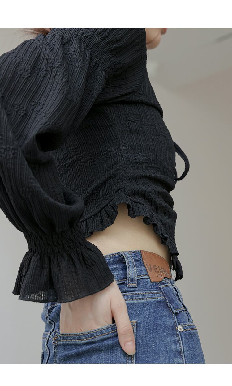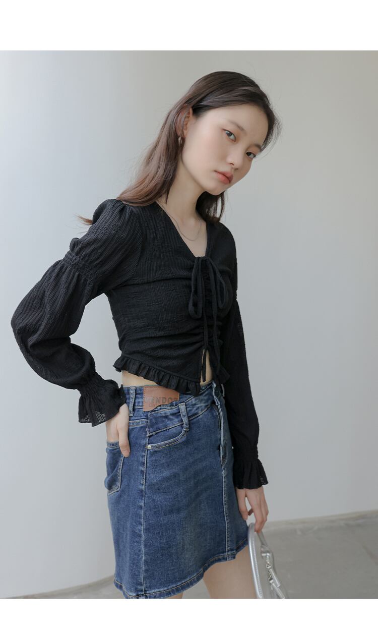 レース Vネック シャツ レディース 秋 デザインセンス ニッチ パフスリーブ ショート シャツ ブラック L トップス 袖あり かわいい 大人可愛い きれいめ シンプル カジュアル 大人 上品 おしゃれ お洒落 大人可愛い 大人女子 キュート 春 夏 秋 10代 20代 30代 レディース 女性用 女の子 通勤 学生 通学 デート お出かけ 女子会 お泊まり 休日 パーティー イベント 旅行 普段使い ファッション コーデ スタイル インスタ映え
