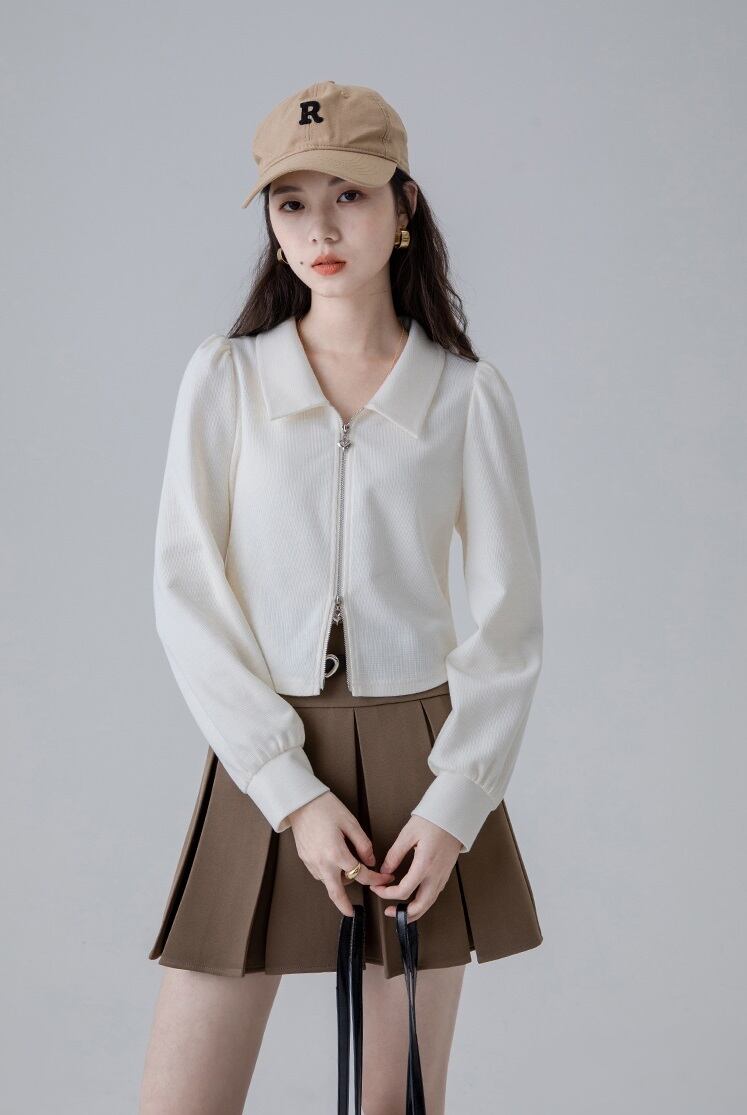 ポロカラー ジッパー 長袖 Tシャツ 女性 ニッチ デザインセンス 秋 スリム ショート トップ グレー アプリコット S トップス 袖あり かわいい 大人可愛い きれいめ シンプル カジュアル 大人 上品 おしゃれ お洒落 大人可愛い 大人女子 キュート 春 夏 秋 10代 20代 30代 レディース 女性用 女の子 通勤 学生 通学 デート お出かけ 女子会 お泊まり 休日 パーティー イベント 旅行 普段使い ファッション コーデ スタイル インスタ映え