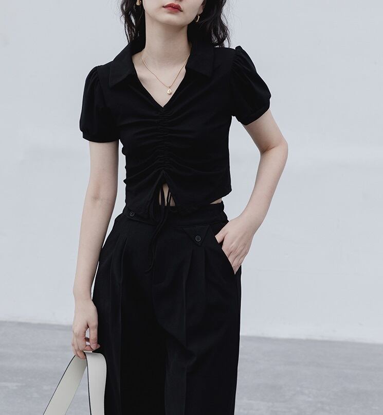 ショート Vネック スリムフィット Tシャツ レディース 夏 デザイン センスニッチ 半袖 ショルダー トップ ブラック フリーサイズ トップス 袖あり かわいい 大人可愛い きれいめ シンプル カジュアル 大人 上品 おしゃれ お洒落 大人可愛い 大人女子 キュート 春 夏 秋 10代 20代 30代 レディース 女性用 女の子 通勤 学生 通学 デート お出かけ 女子会 お泊まり 休日 パーティー イベント 旅行 普段使い ファッション コーデ スタイル インスタ映え