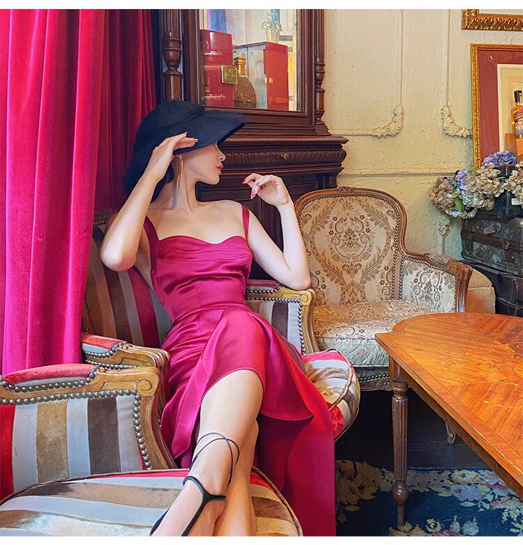 レディース ローズ サスペンダー セクシー 背中の開いた ドレス 秋 フレンチ スタイル ニッチ ヒップ スカート ローズレッド XS ワンピース 膝丈 ひざ丈 袖あり 5分袖 かわいい 大人可愛い きれいめ シンプル カジュアル 大人 上品 おしゃれ お洒落 大人可愛い 大人女子 春 夏 秋 10代 20代 30代 40代 レディース 女性用 女の子 学生 通学 デート お出かけ 女子会 お泊まり 休日 パーティー イベント 旅行 普段使い ファッション コーデ スタイル トレンド 流行