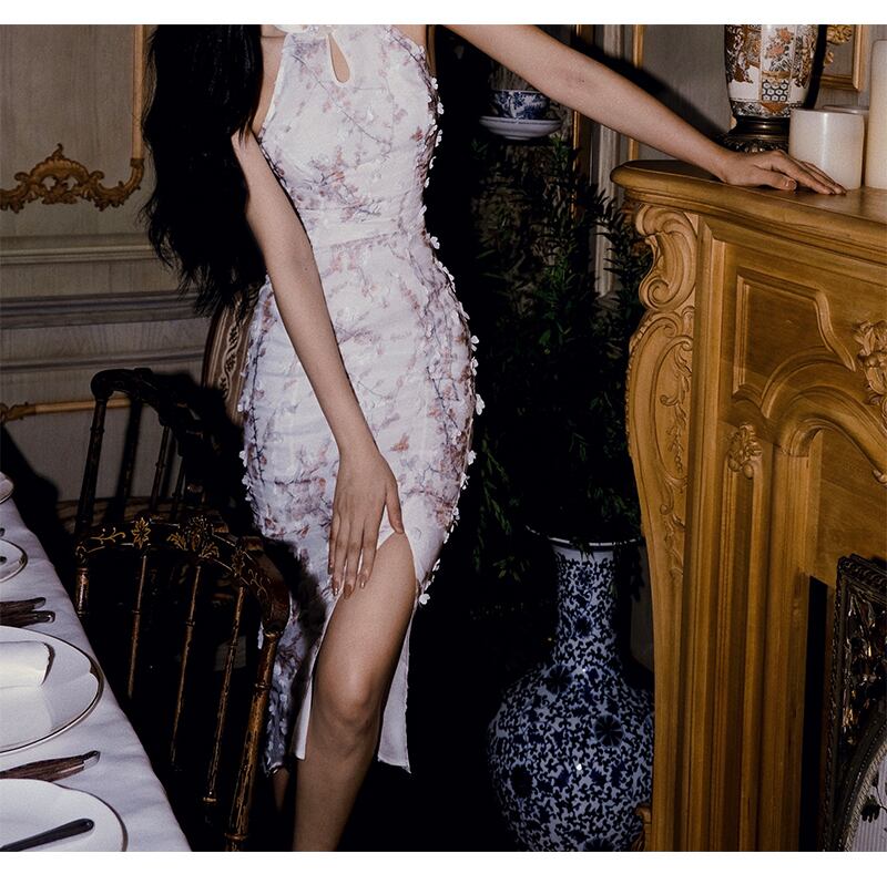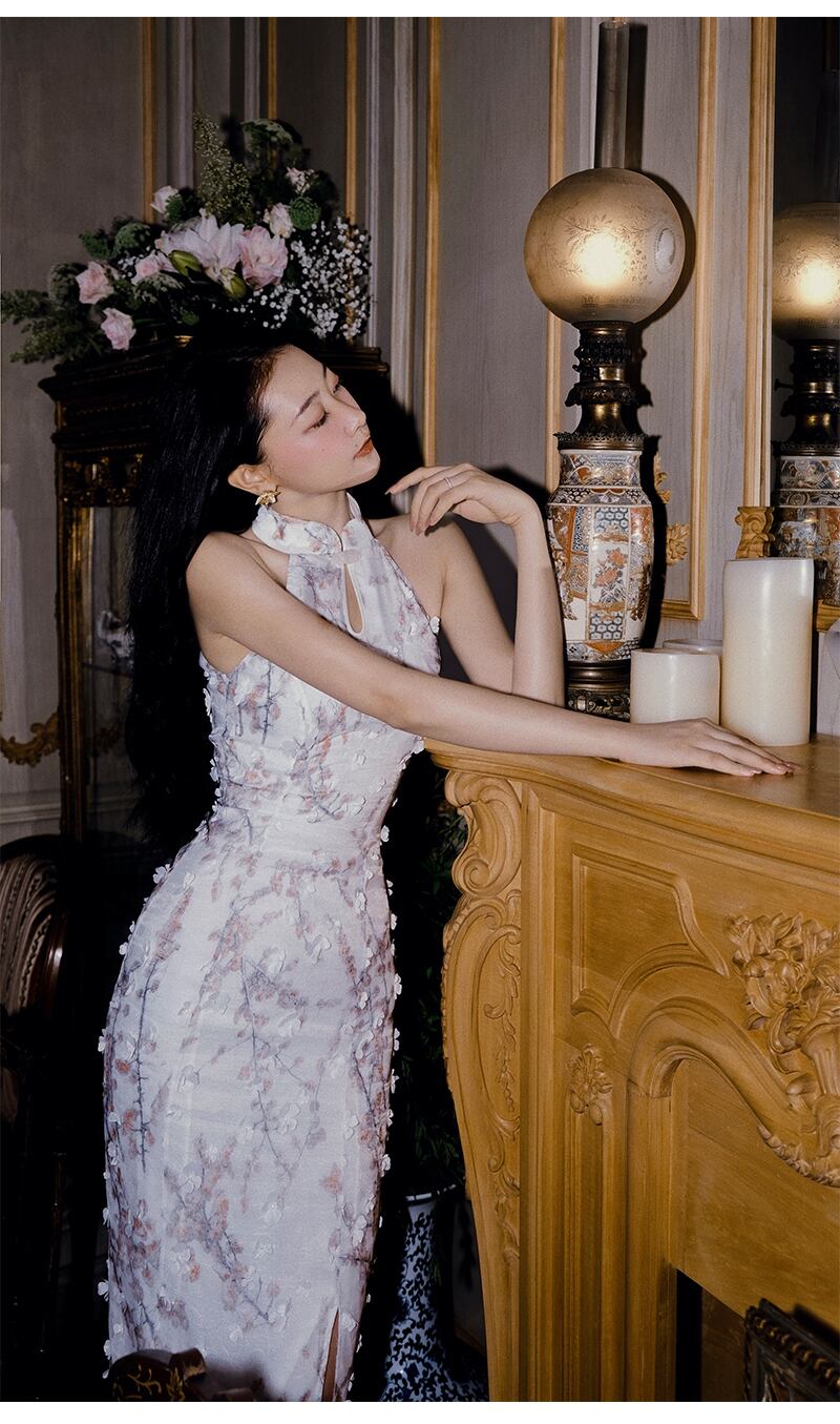 個性的なデザイン エレガント 秋 チャイナ ホワイト ホルター ネック 花柄 シフォン ワンピース ドレス ホワイト ネイビー XS S M L ワンピース 膝丈 ひざ丈 かわいい 大人可愛い きれいめ シンプル カジュアル 大人 上品 おしゃれ お洒落 大人可愛い 大人女子 春 夏 秋 10代 20代 30代 40代 レディース 女性用 女の子 学生 通学 デート お出かけ 女子会 お泊まり 休日 パーティー イベント 旅行 普段使い ファッション コーデ スタイル トレンド 流行 インスタ映え | ameiro18