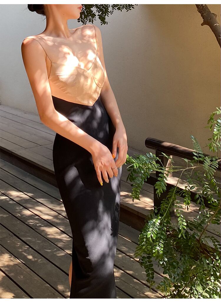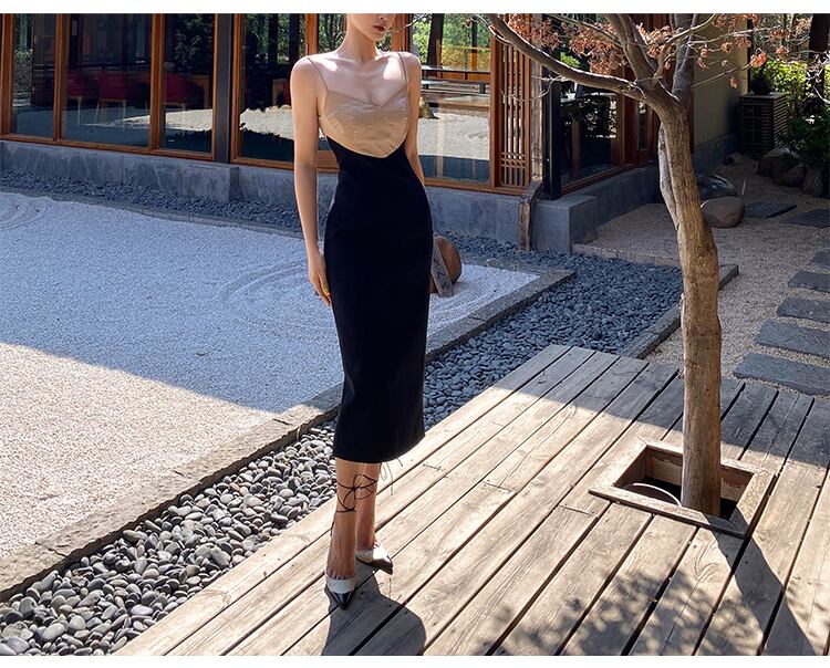 黒 ステッチ V ネック サスペンダー ドレス 秋 ハイエンド レトロ スリム ヘップバーン スカート ブラック S ワンピース 膝丈 ひざ丈 かわいい 大人可愛い きれいめ シンプル カジュアル 大人 上品 おしゃれ お洒落 大人可愛い 大人女子 春 夏 秋 10代 20代 30代 40代 レディース 女性用 女の子 学生 通学 デート お出かけ 女子会 お泊まり 休日 パーティー イベント 旅行 普段使い ファッション コーデ スタイル トレンド 流行 インスタ映え