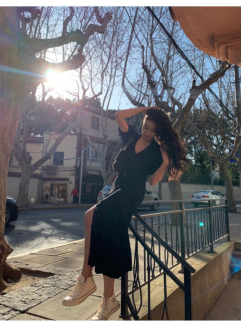 フレンチ スタイル 黒 v ネック パフ スリーブ ニット ドレス 秋 スタイル 優しい スリム ドレス ブラック S ワンピース 膝丈 ひざ丈 かわいい 大人可愛い きれいめ シンプル カジュアル 大人 上品 おしゃれ お洒落 大人可愛い 大人女子 春 夏 秋 10代 20代 30代 40代 レディース 女性用 女の子 学生 通学 デート お出かけ 女子会 お泊まり 休日 パーティー イベント 旅行 普段使い ファッション コーデ スタイル トレンド 流行 インスタ映え | ameiro18