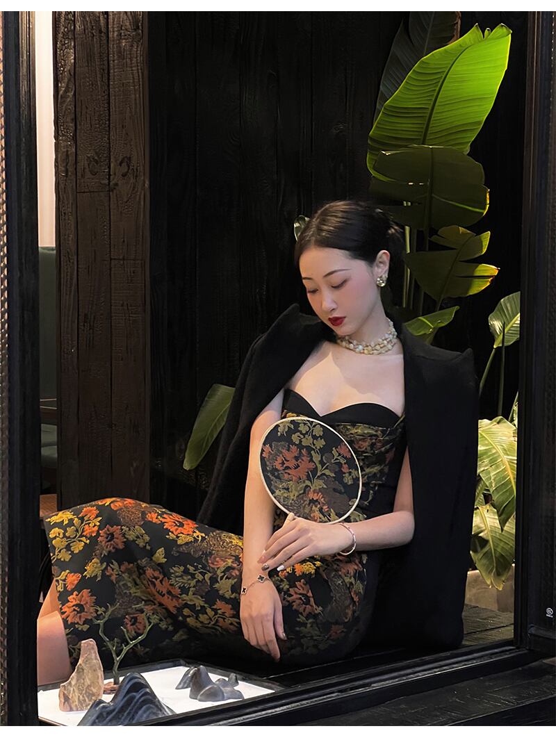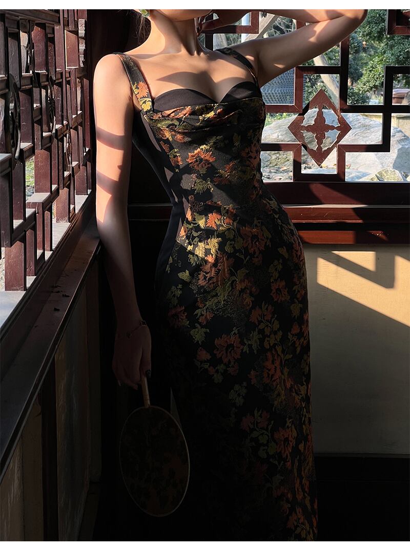 エレガント 個性的なデザイン 黒 花柄 サスペンダー ドレス 秋 フレンチ レトロ バッグ ヒップ スカート 女性 XS S ワンピース 膝丈 ひざ丈 かわいい 大人可愛い きれいめ シンプル カジュアル 大人 上品 おしゃれ お洒落 大人可愛い 大人女子 春 夏 秋 10代 20代 30代 40代 レディース 女性用 女の子 学生 通学 デート お出かけ 女子会 お泊まり 休日 パーティー イベント 旅行 普段使い ファッション コーデ スタイル トレンド 流行 インスタ映え