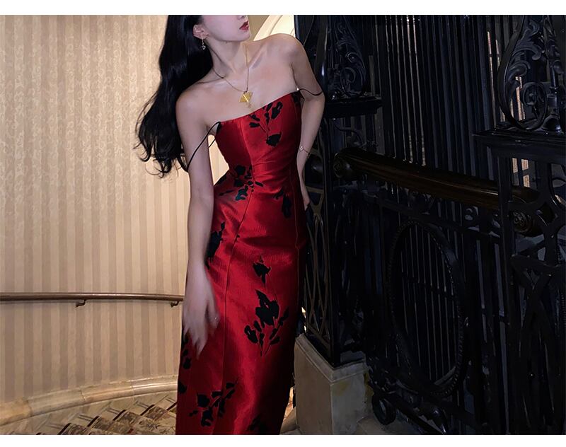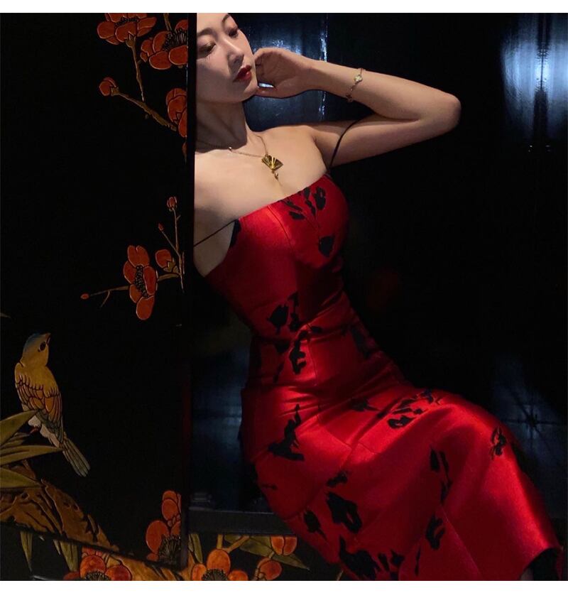 個性的なデザイン 黒 スリング 花 ドレス 秋 ハイエンド セクシー レトロ 女性 ロングスカート ブラック レッド XS S M L ワンピース 膝丈 ひざ丈 かわいい 大人可愛い きれいめ シンプル カジュアル 大人 上品 おしゃれ お洒落 大人可愛い 大人女子 春 夏 秋 10代 20代 30代 40代 レディース 女性用 女の子 学生 通学 デート お出かけ 女子会 お泊まり 休日 パーティー イベント 旅行 普段使い ファッション コーデ スタイル トレンド 流行 インスタ映え | ameiro18