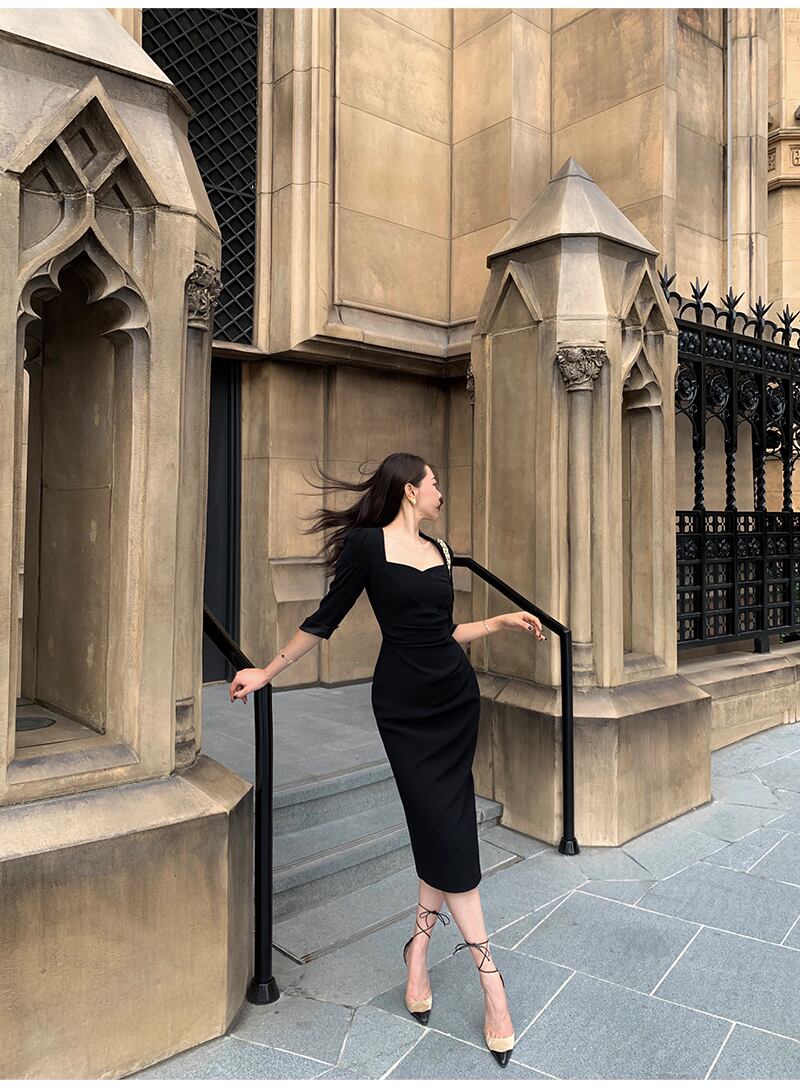 黒 半袖 ドレス 秋 冬 ヘップバーン スタイル スリムフィット 薄い パッケージ ヒップ スカート ブラック XS S M L ワンピース 膝丈 ひざ丈 かわいい 大人可愛い きれいめ シンプル カジュアル 大人 上品 おしゃれ お洒落 大人可愛い 大人女子 春 夏 秋 10代 20代 30代 40代 レディース 女性用 女の子 学生 通学 デート お出かけ 女子会 お泊まり 休日 パーティー イベント 旅行 普段使い ファッション コーデ スタイル トレンド 流行 インスタ映え | ameiro18