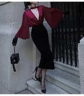 ローズ 長袖 シルク シャツ 秋 ファッション 外国 スタイル フレンチ シック v ネック トップ レッド S かわいい 大人可愛い きれいめ シンプル カジュアル 大人 上品 おしゃれ お洒落 大人可愛い 大人女子 キュート 春 秋 10代 20代 30代 40代 レディース 女性用 学生 デート お出かけ 女子会 休日 パーティー イベント 旅行 着回し 普段使い ファッション コーデ スタイル トレンド 流行 インスタ映え