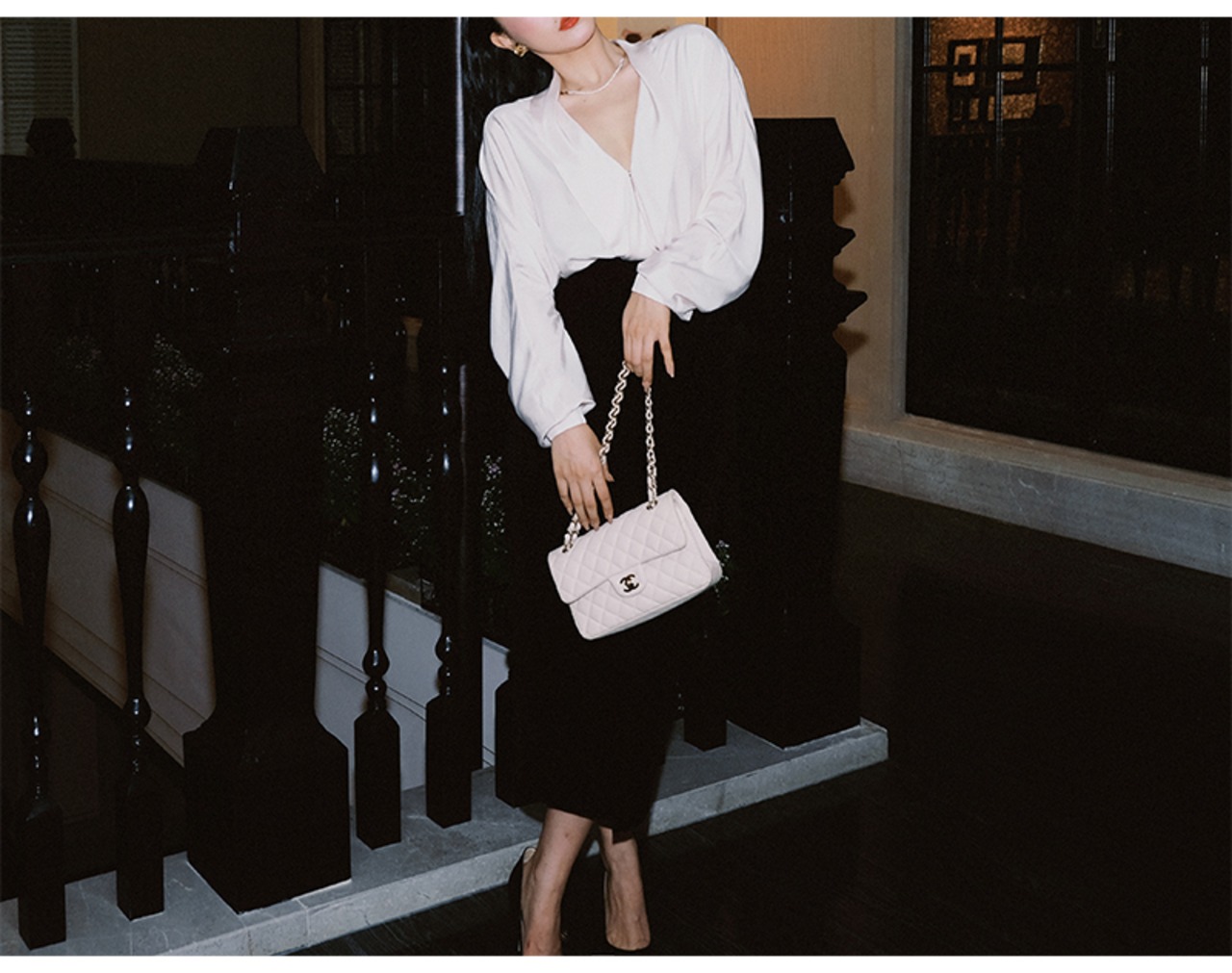 V ネック 長袖 シャツ 秋 冬 フレンチ スタイル シック デザイン ニッチ 優しい スタイル トップ 女性 ホワイト S トップス かわいい 大人可愛い きれいめ シンプル カジュアル 大人 上品 おしゃれ お洒落 大人可愛い 大人女子 キュート 春 秋 10代 20代 30代 40代 レディース 女の子 学生 デート お出かけ 女子会 休日 パーティー イベント 旅行 着回し 普段使い ファッション コーデ スタイル トレンド 流行 インスタ映え
