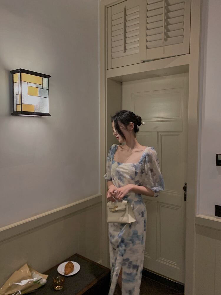 ハイエンド ワンショルダー ドレス デザイン ニッチ 花柄 レトロ ネック サスペンダー スカート ブルー S M ワンピース かわいい 大人可愛い きれいめ シンプル カジュアル 大人 上品 おしゃれ お洒落 大人可愛い 大人女子 春 夏 秋 10代 20代 30代 40代 レディース 女性用 女の子 学生 通学 デート お出かけ 女子会 お泊まり 休日 パーティー イベント 旅行 普段使い ファッション コーデ スタイル トレンド 流行 インスタ映え