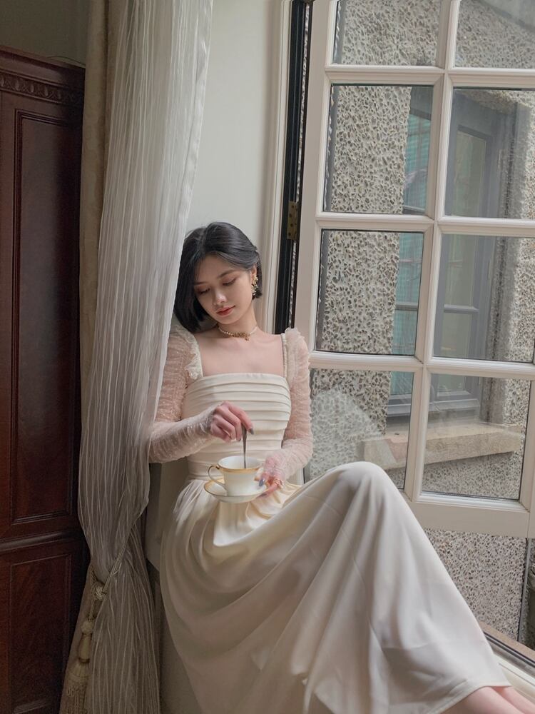 レディース エレガント レトロ スクエアネック ドレス 春 スタイル 女性 ドレス ロングスカート ホワイト M ワンピース かわいい 大人可愛い きれいめ シンプル カジュアル 大人 上品 おしゃれ お洒落 大人可愛い 大人女子 春 夏 秋 10代 20代 30代 40代 レディース 女性用 女の子 学生 通学 デート お出かけ 女子会 お泊まり 休日 パーティー イベント 旅行 普段使い ファッション コーデ スタイル トレンド 流行 インスタ映え