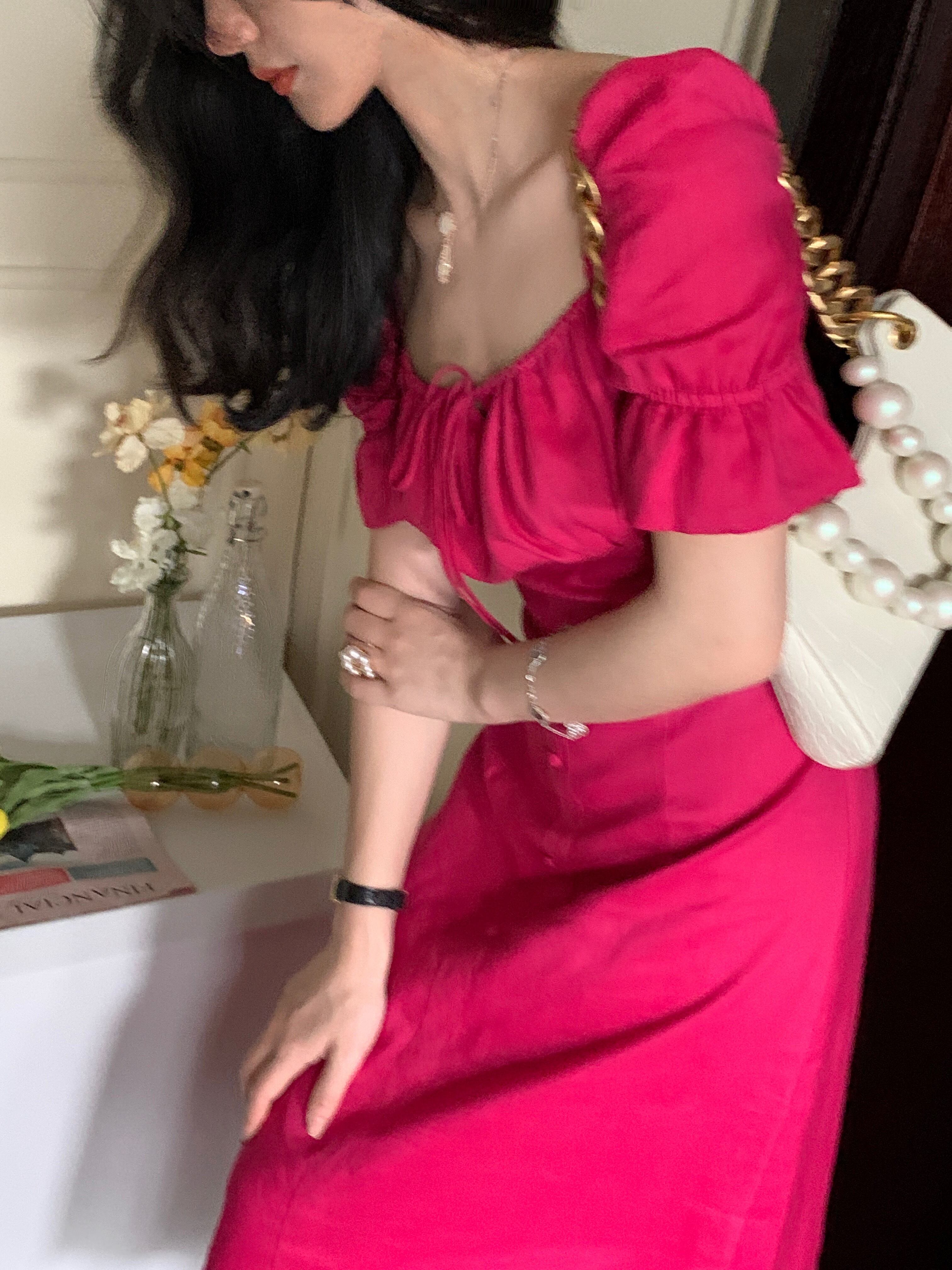フレンチ スクエアカラー パフスリーブ ワンピース レディース 夏 明るい ハイエンド デザインセンス ニッチ スカート ピンク M ワンピース 膝丈 ひざ丈 袖あり 5分袖 かわいい 大人可愛い きれいめ シンプル カジュアル 大人 上品 おしゃれ お洒落 大人可愛い 大人女子 春 夏 秋 10代 20代 30代 40代 レディース 女性用 女の子 学生 通学 デート お出かけ 女子会 お泊まり 休日 パーティー イベント 旅行 普段使い ファッション コーデ スタイル トレンド 流行 インスタ映え