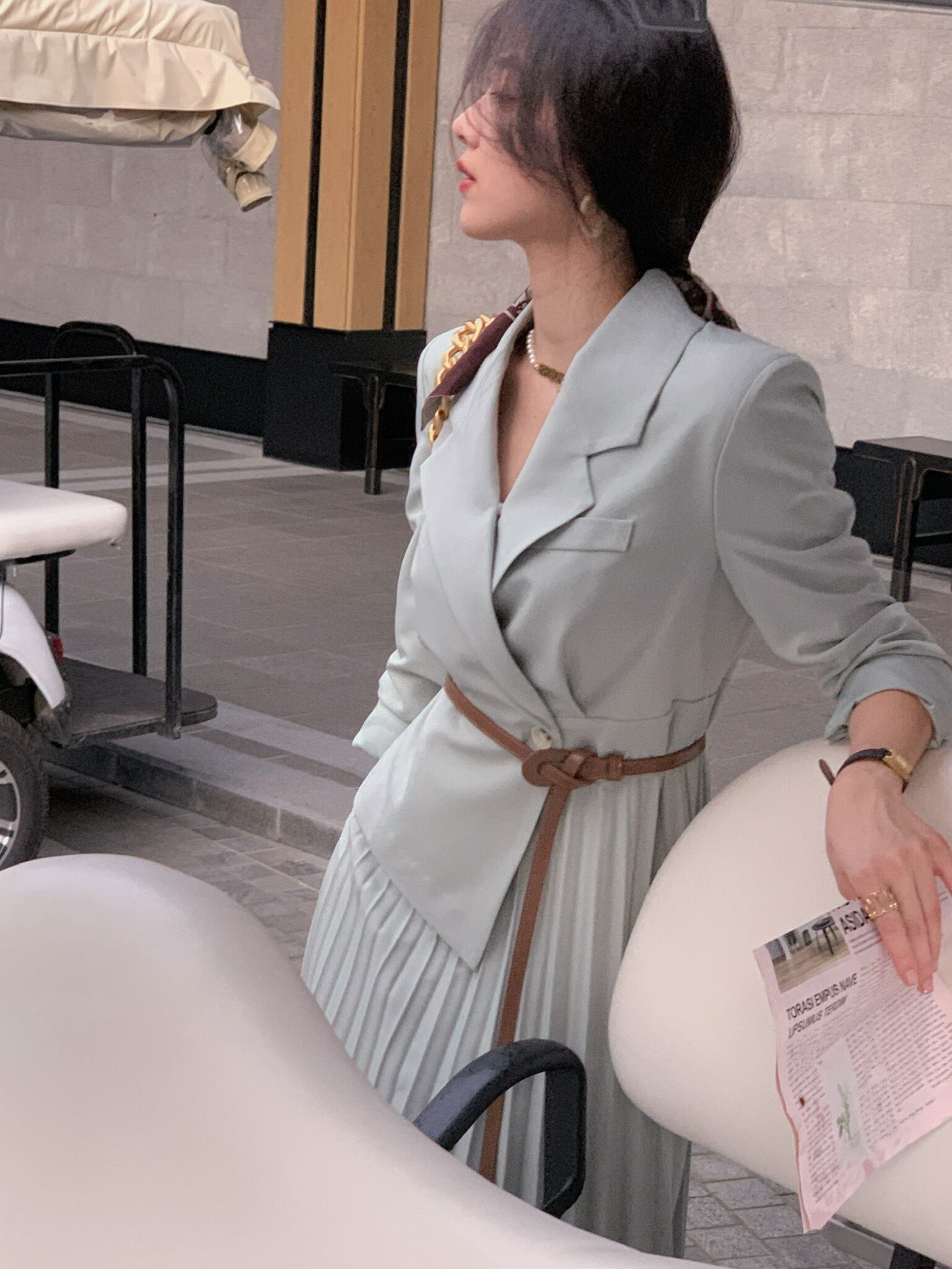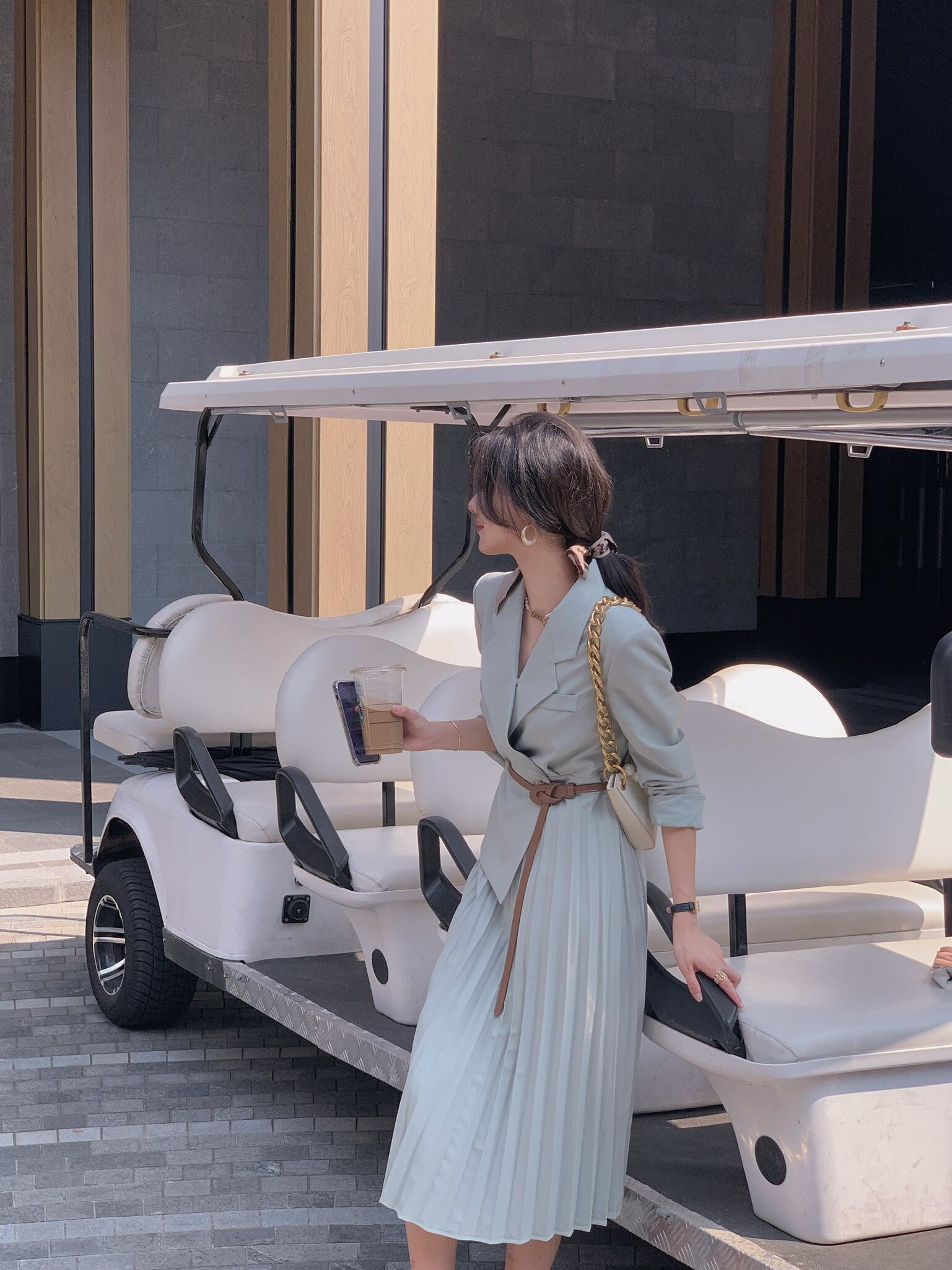 プリーツ 長袖 ワンピース レディース ロング フレンチ スーツ ジャケット 女性 デザインセンス ニッチ スカート グリーン M ワンピース 袖あり 5分袖 かわいい 大人可愛い きれいめ シンプル カジュアル 大人 上品 おしゃれ お洒落 大人可愛い 大人女子 春 夏 秋 10代 20代 30代 40代 レディース 女性用 女の子 学生 通学 デート お出かけ 女子会 お泊まり 休日 パーティー イベント 旅行 普段使い ファッション コーデ スタイル トレンド 流行 インスタ映え