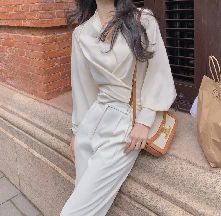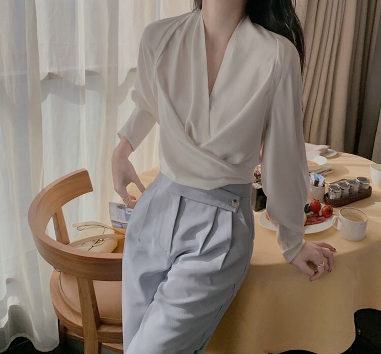 白シャツ レディース Vネック トップス レディース デザインセンス ニッチ ハイエンド フレンチ シャツ ベージュ ホワイト M トップス 袖あり かわいい 大人可愛い きれいめ シンプル カジュアル 大人 上品 おしゃれ お洒落 大人可愛い 大人女子 キュート 春 夏 秋 10代 20代 30代 レディース 女性用 女の子 通勤 学生 通学 デート お出かけ 女子会 お泊まり 休日 パーティー イベント 旅行 普段使い ファッション コーデ スタイル インスタ映え | ameiro18
