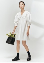 ふんわりとしたシルエットが可愛いレディースワンピースの登場です。カジュアルなデザインながらも、上品さも感じる一着です。春や夏にぴったりの膝丈ドレスで、可愛く、女性らしく、そしておしゃれに決まります。