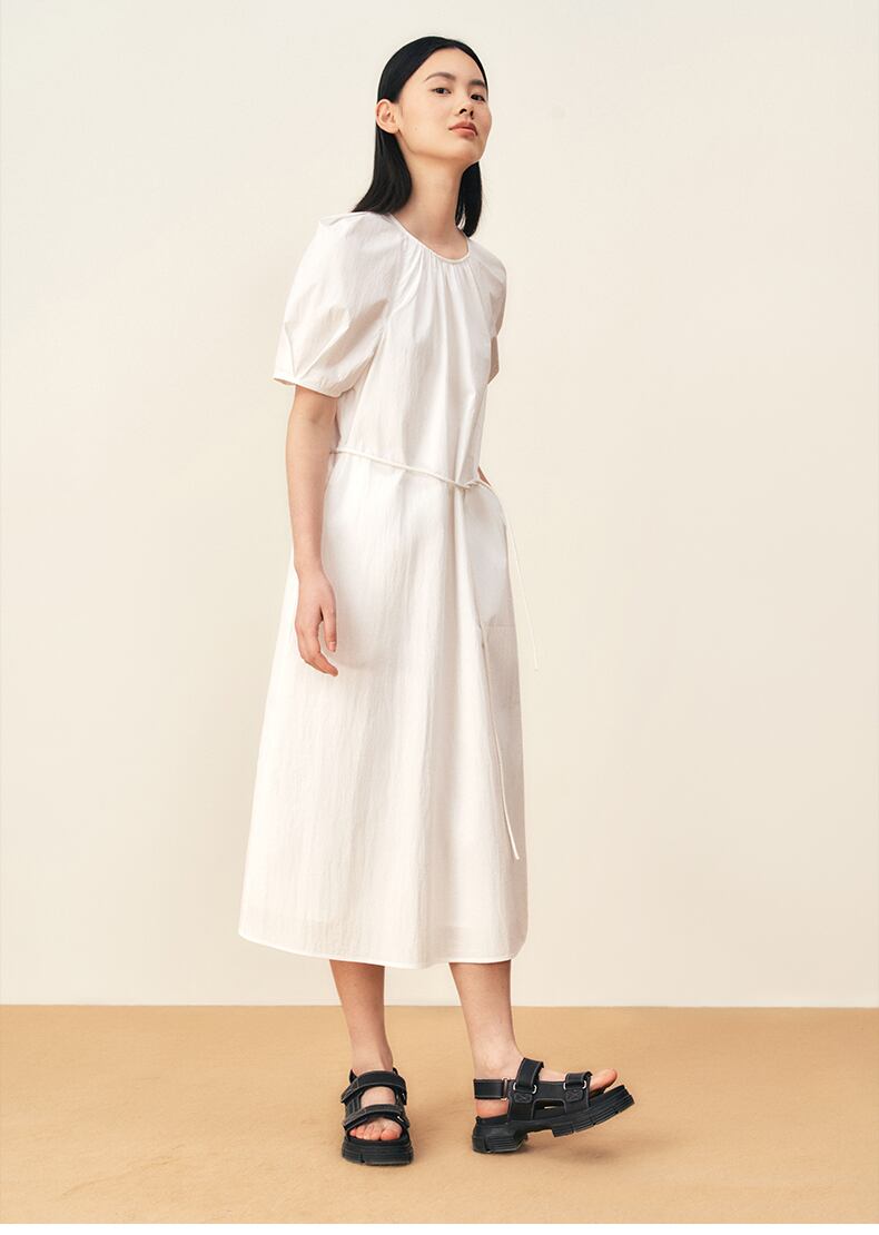 レディース ラウンド ネック フレンチ スタイル パフ スリーブ ドレス 女性 夏 ミドル丈 スカート ホワイト ブルー S M L かわいい 大人可愛い きれいめ シンプル カジュアル 大人 上品 おしゃれ お洒落 大人可愛い 大人女子 春 夏 秋 10代 20代 30代 40代 レディース 女性用 女の子 学生 通学 デート お出かけ 女子会 お泊まり 休日 パーティー イベント 旅行 普段使い ファッション コーデ スタイル トレンド 流行 インスタ映え