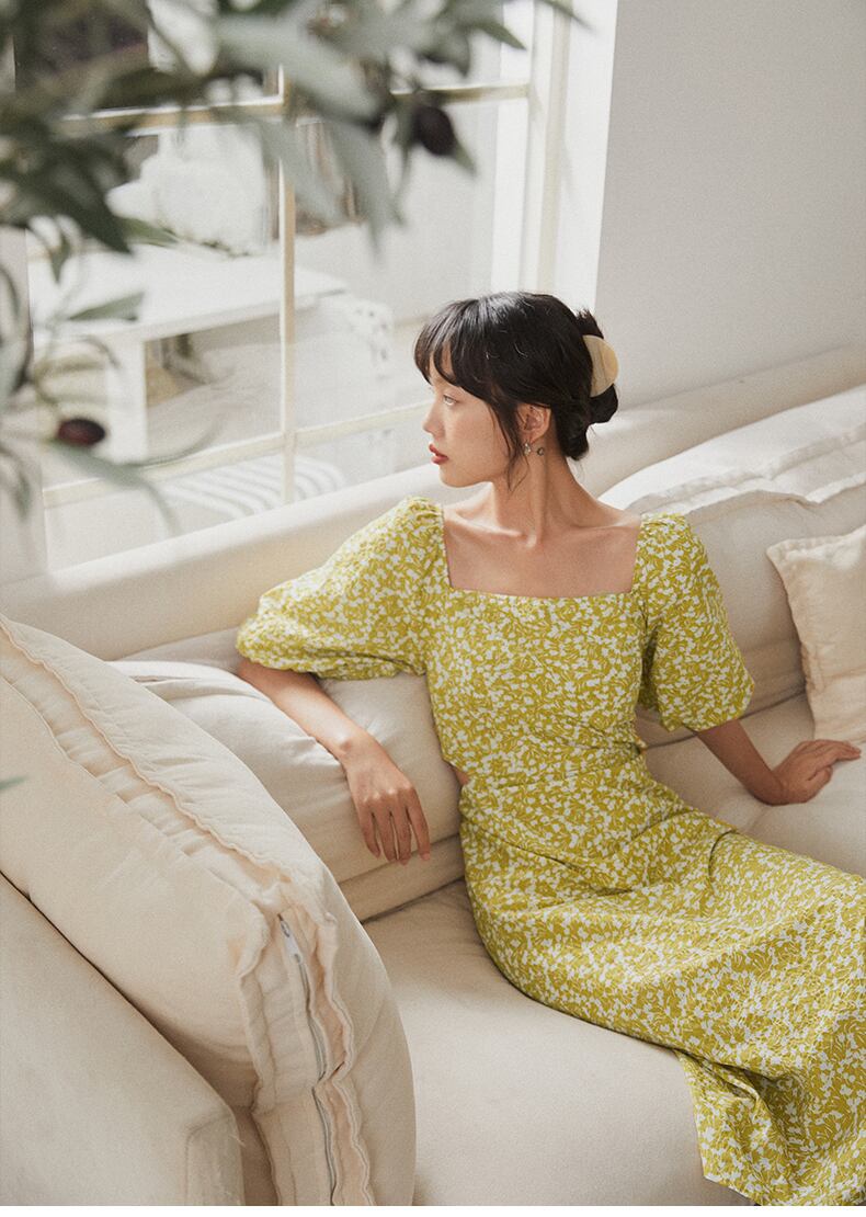 夏ドレス ショー ウエスト セクシー スカート 花柄 スカート フレンチ ティー ブレーク スカート イエロー S M L 袖あり かわいい 大人可愛い きれいめ シンプル カジュアル 大人 上品 おしゃれ お洒落 大人可愛い 大人女子 春 夏 秋 10代 20代 30代 40代 レディース 女性用 女の子 学生 通学 デート お出かけ 女子会 お泊まり 休日 パーティー イベント 旅行 普段使い ファッション コーデ スタイル トレンド 流行 インスタ映え