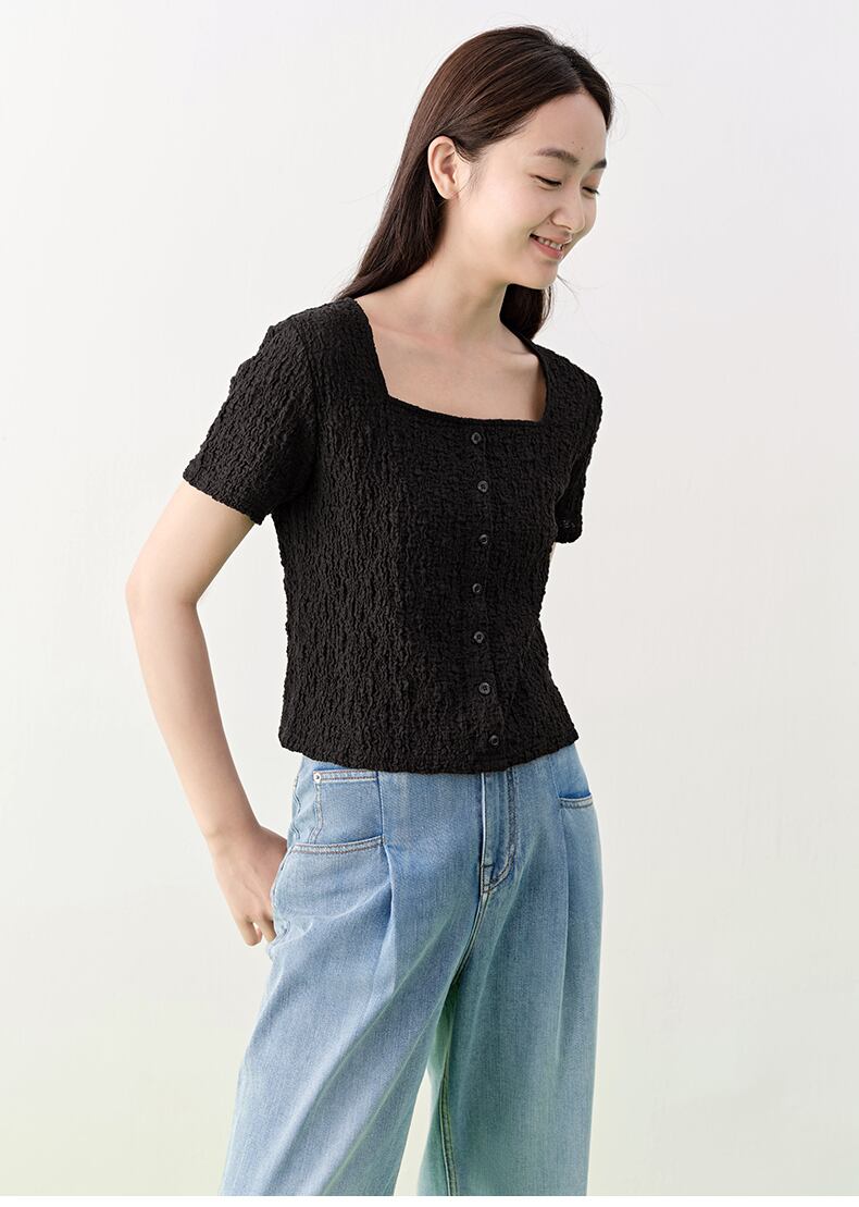 シンプルで上品なデザインのファッションカジュアルな半袖Tシャツ。袖ありのスクエアカラーが、女性らしい可愛さと洗練を引き立てます。ホワイトとブラックの2色展開で、どんなコーディネートにも合わせやすく、幅広いシーンで活躍します。