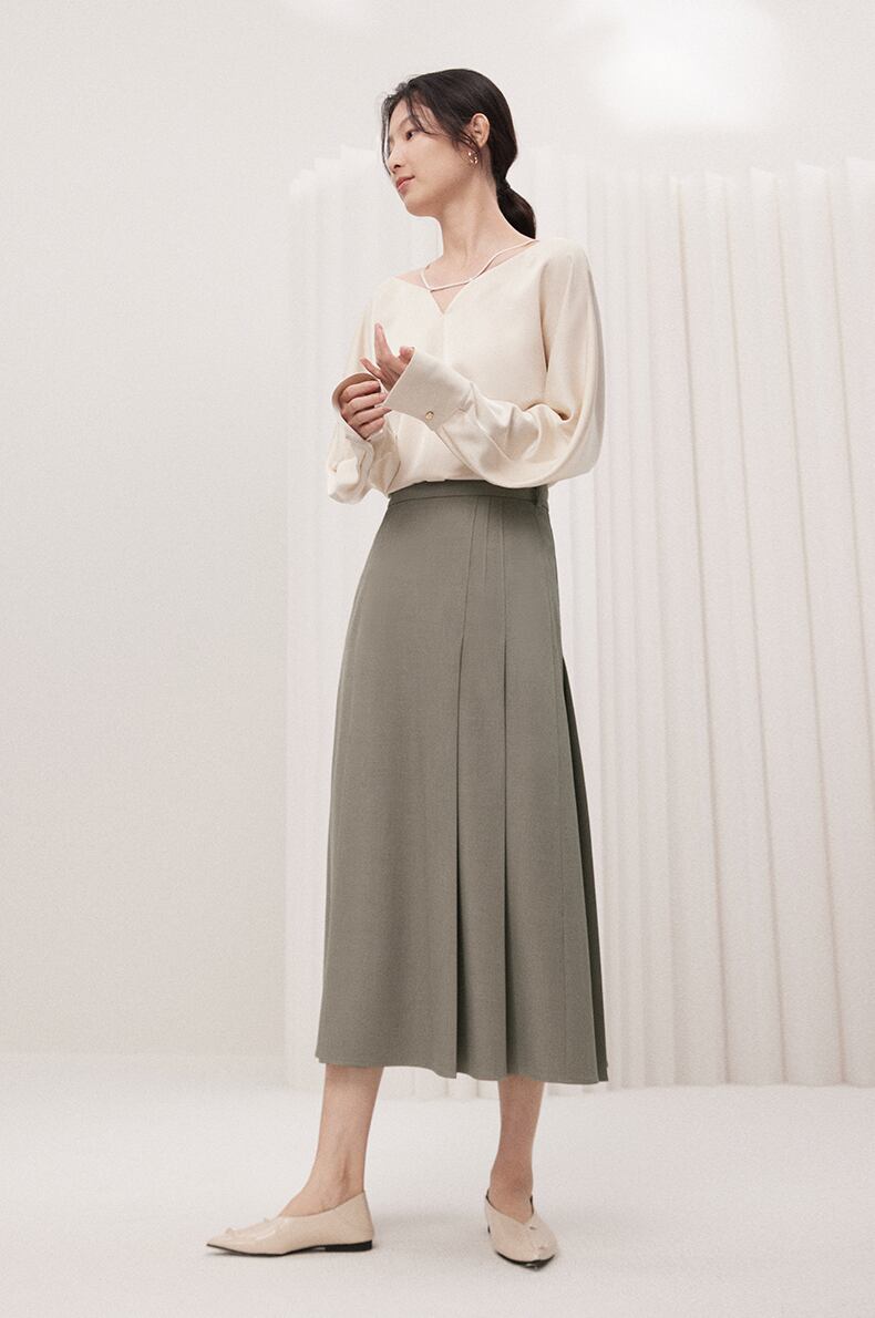上品でエレガントなデザインのレディースシャツをご紹介します。サテン素材の光沢感と柔らかい肌触りが特徴で、女性らしさを引き立てます。ネックデザインにもこだわり、デコルテを美しく見せる仕上がりになっています。