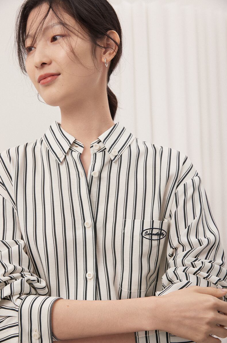 リラックス感と女性らしさを兼ね備えた、春夏のオシャレに欠かせないシャツです。シンプルなストライプデザインに、カラフルな刺繍がアクセントとして施されており、一枚で存在感のあるコーディネートが完成します。丈感も長めのデザインなので、大人の女性にもぴったりです。