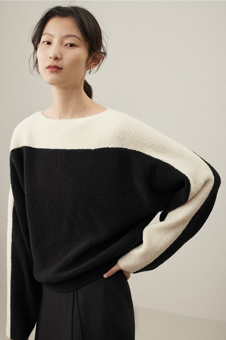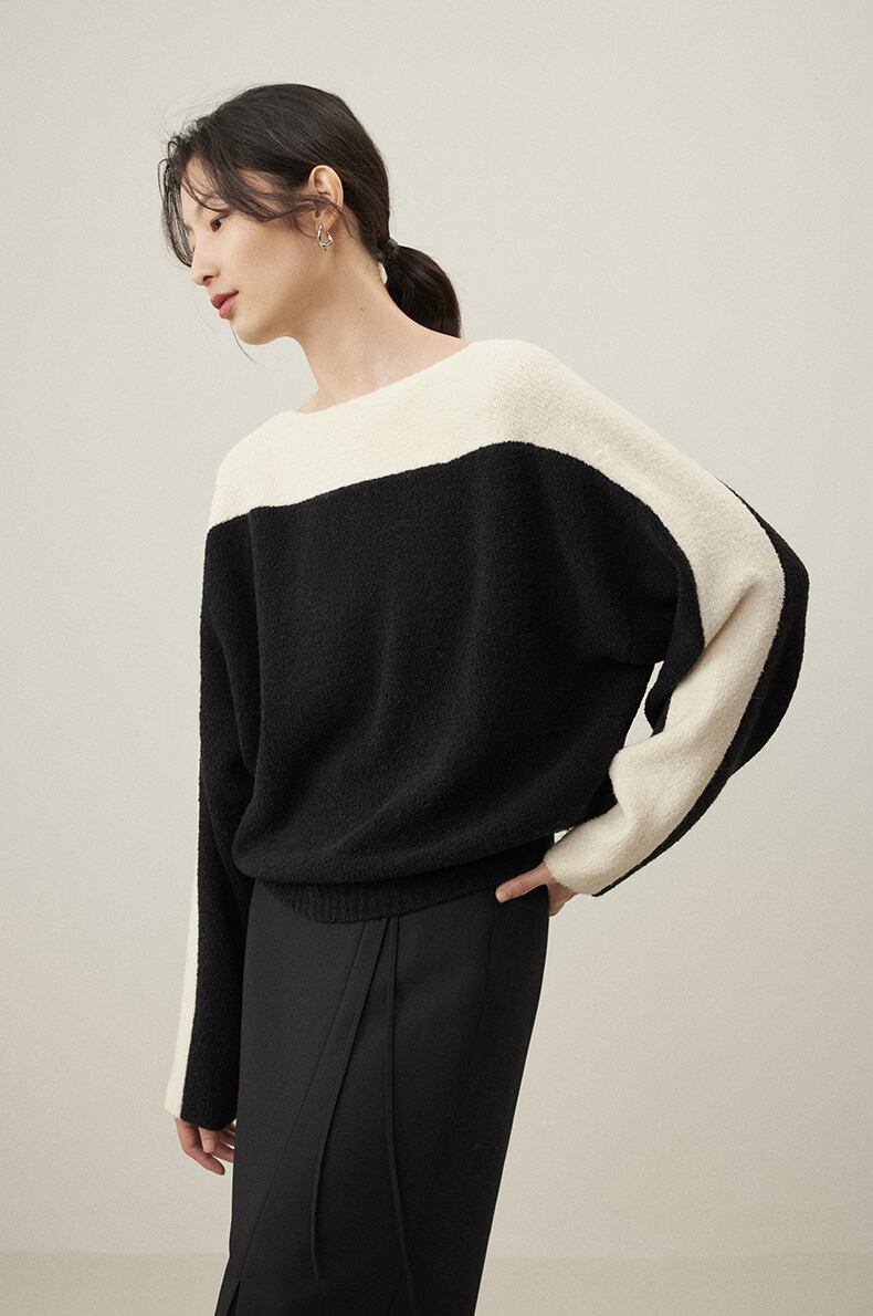 個性的なデザインが魅力のループウールニットセーターです。カラーコントラストがポイントで、シンプルながらもおしゃれで大人可愛い印象を演出します。どんなスタイルにも合わせやすいので、通勤やデート、休日のお出かけなど、幅広いシーンで活躍してくれます。