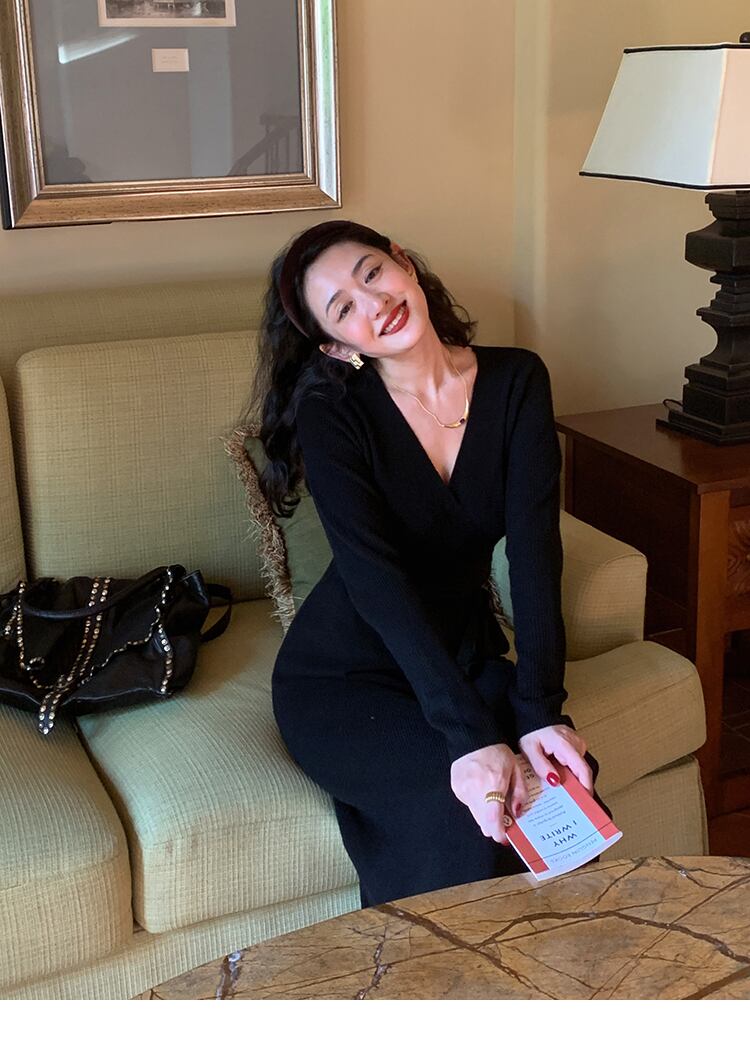 長袖 Vネック ワンピース タイワンピース 秋 冬 レディース フレンチ レトロ ニット ワンピ レッド イエロー ブラック S M L かわいい 大人可愛い きれいめ シンプル カジュアル 大人 上品 おしゃれ お洒落 大人可愛い 大人女子 春 夏 秋 10代 20代 30代 40代 レディース 女性用 女の子 学生 通学 デート お出かけ 女子会 お泊まり 休日 パーティー イベント 旅行 普段使い ファッション コーデ スタイル トレンド 流行 インスタ映え | ameiro18