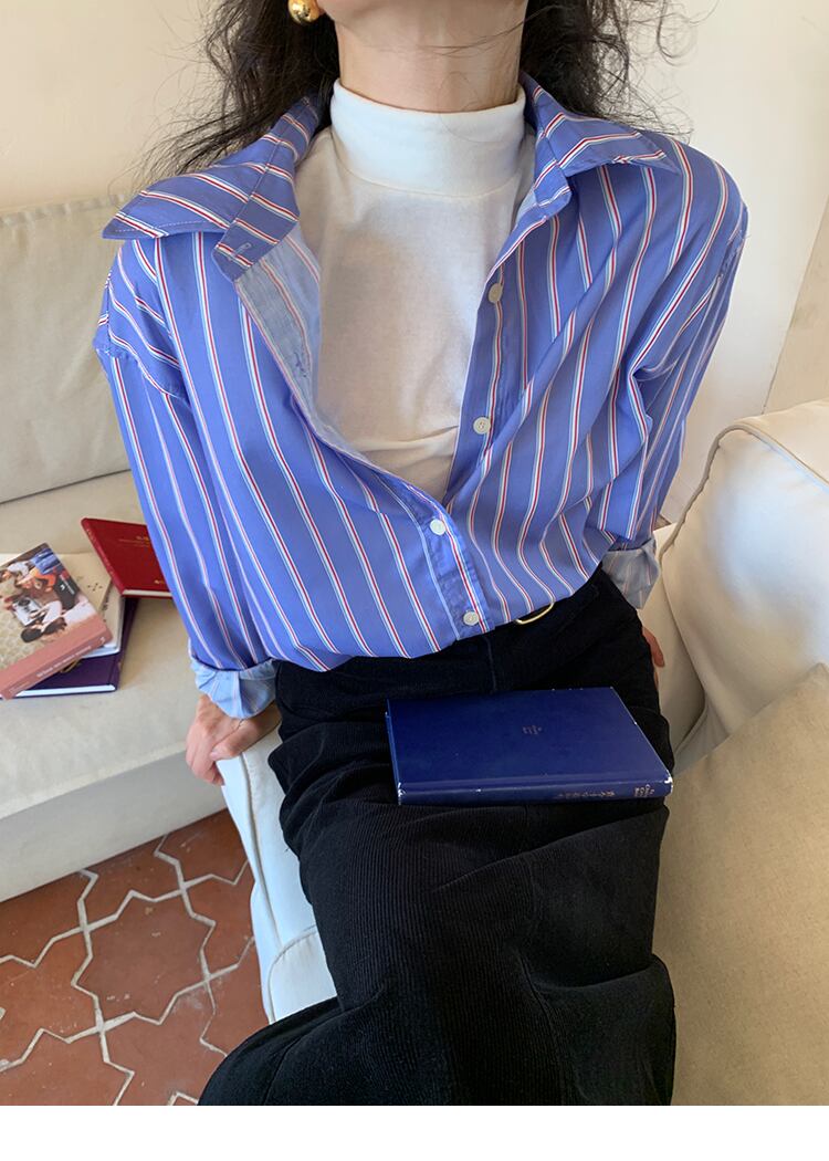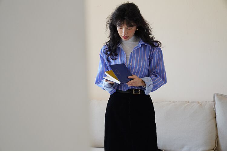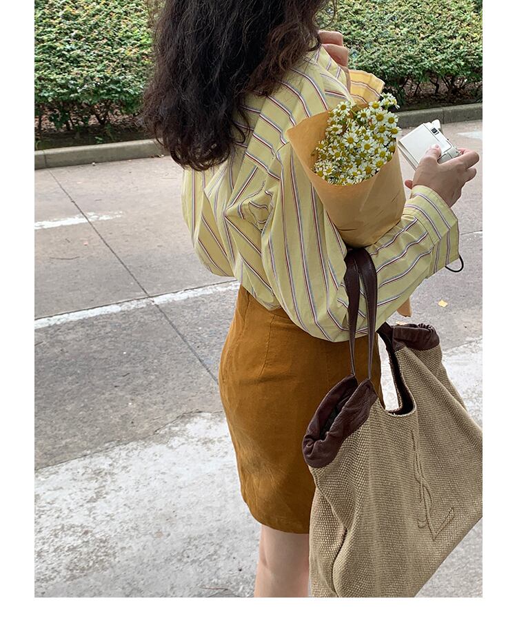 ストライプ ゆったり 長袖 シャツ レディース 秋 フレンチ レトロ デザイン ニッチ レイヤードシャツ イエロー ブルー S M L トップス 袖あり かわいい 大人可愛い きれいめ シンプル カジュアル 大人 上品 おしゃれ お洒落 大人可愛い 大人女子 キュート 春 夏 秋 10代 20代 30代 レディース 女性用 女の子 通勤 学生 通学 デート お出かけ 女子会 お泊まり 休日 パーティー イベント 旅行 普段使い ファッション コーデ スタイル インスタ映え 色展開 | ameiro18