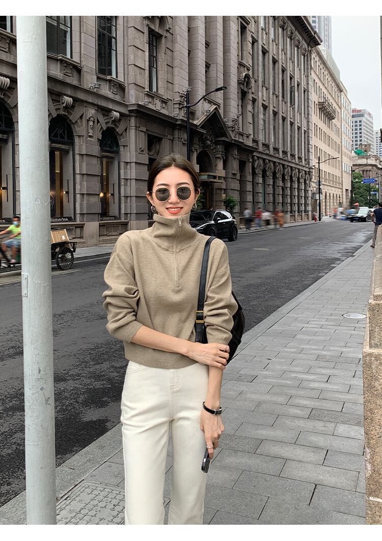 ハーフハイカラー ジッパー セーター 女性 ルーズ ラペル ショート ニット トップ ブラック ベージュ S M L トップス 袖あり かわいい 大人可愛い きれいめ シンプル カジュアル 大人 上品 おしゃれ お洒落 大人可愛い 大人女子 キュート 春 夏 秋 10代 20代 30代 レディース 女性用 女の子 通勤 学生 通学 デート お出かけ 女子会 お泊まり 休日 パーティー イベント 旅行 普段使い ファッション コーデ スタイル インスタ映え 色展開