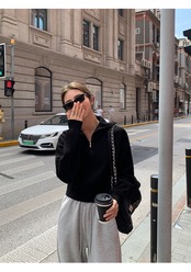 ハーフハイカラー ジッパー セーターは、女性に人気のあるルーズなデザインのトップスです。ショート丈のトップスには、フロントに施されたジッパーがアクセントとなり、おしゃれでカジュアルなスタイリングにぴったりです。さらに、ブラックとベージュの2色展開で、どんなコーディネートにも合わせやすくなっています。大人可愛い雰囲気がありつつも、上品さも演出できるアイテムとなっています。