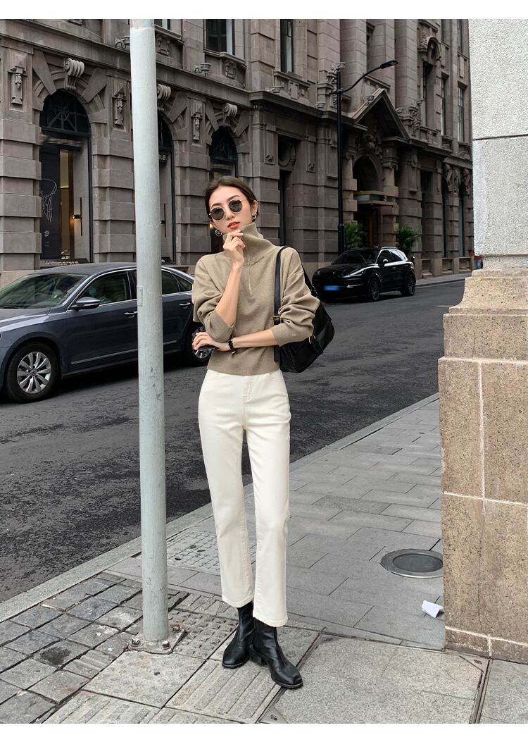 このセーターは、女性の魅力を引き立てるデザインへと進化してきた経緯があります。ショート丈のトップスは、女性の体型をスタイリッシュに見せる効果があります。さらに、ハーフハイカラーのデザインは、首元をすっきりと見せる効果があり、女性らしい美しいデコルテを演出することができます。ジッパーのディテールは、シンプルでありながらも個性的でおしゃれなアクセントとなっています。