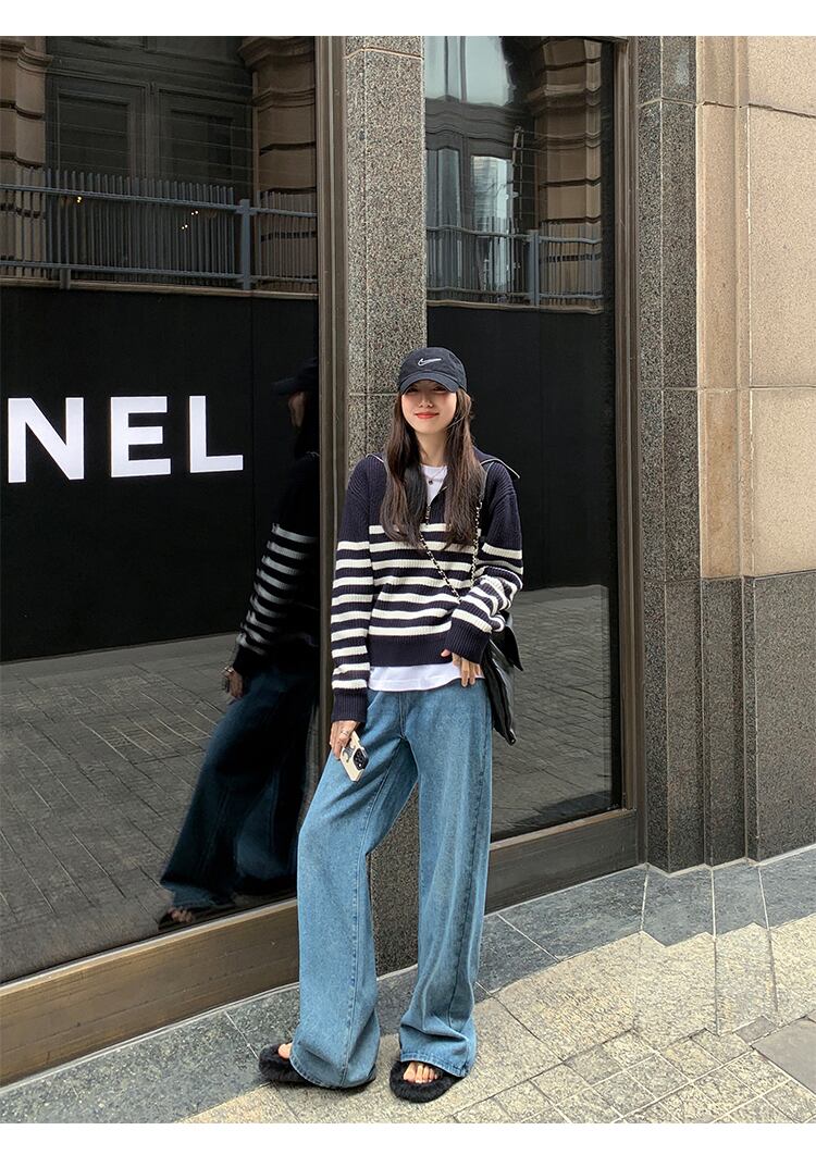 ストライプ セーター レディース ハーフジッパー ポロ ラペル プルオーバー ゆったり 韓国 厚手 ニットトップス アプリコット ブルー S M L トップス 袖あり かわいい 大人可愛い きれいめ シンプル カジュアル 大人 上品 おしゃれ お洒落 大人可愛い 大人女子 キュート 春 夏 秋 10代 20代 30代 レディース 女性用 女の子 通勤 学生 通学 デート お出かけ 女子会 お泊まり 休日 パーティー イベント 旅行 普段使い ファッション コーデ スタイル インスタ映え 色展開