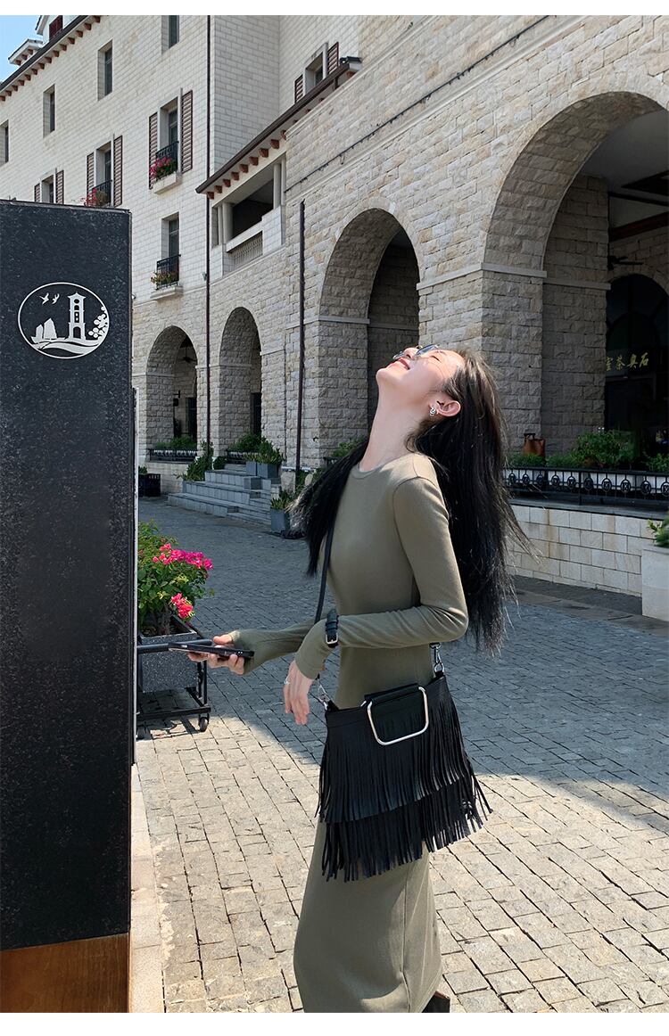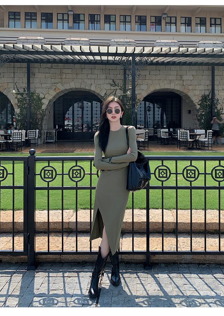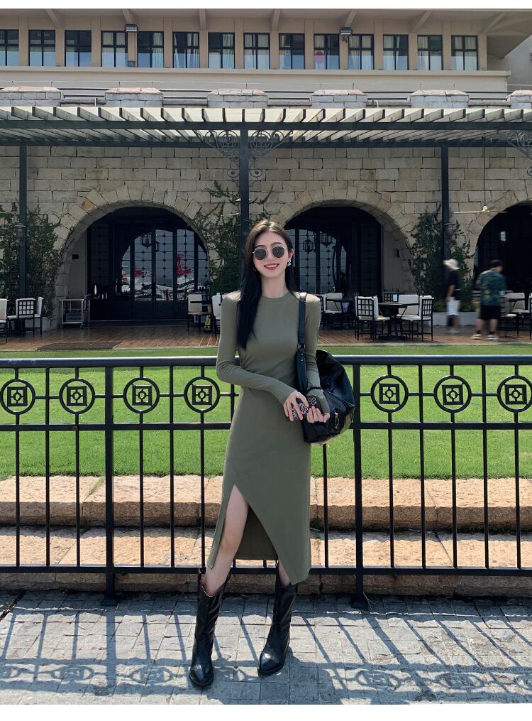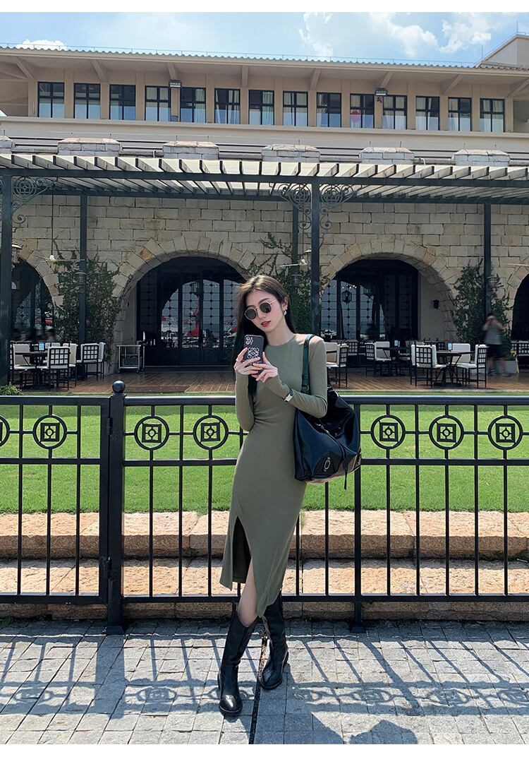 レディース ニット 長袖 ドレス 女性 スリットスリム スカート デザインセンス ニッチ グリーン ブラック S M L かわいい 大人可愛い きれいめ シンプル カジュアル 大人 上品 おしゃれ お洒落 大人可愛い 大人女子 春 夏 秋 10代 20代 30代 40代 レディース 女性用 女の子 学生 通学 デート お出かけ 女子会 お泊まり 休日 パーティー イベント 旅行 普段使い ファッション コーデ スタイル トレンド 流行 インスタ映え