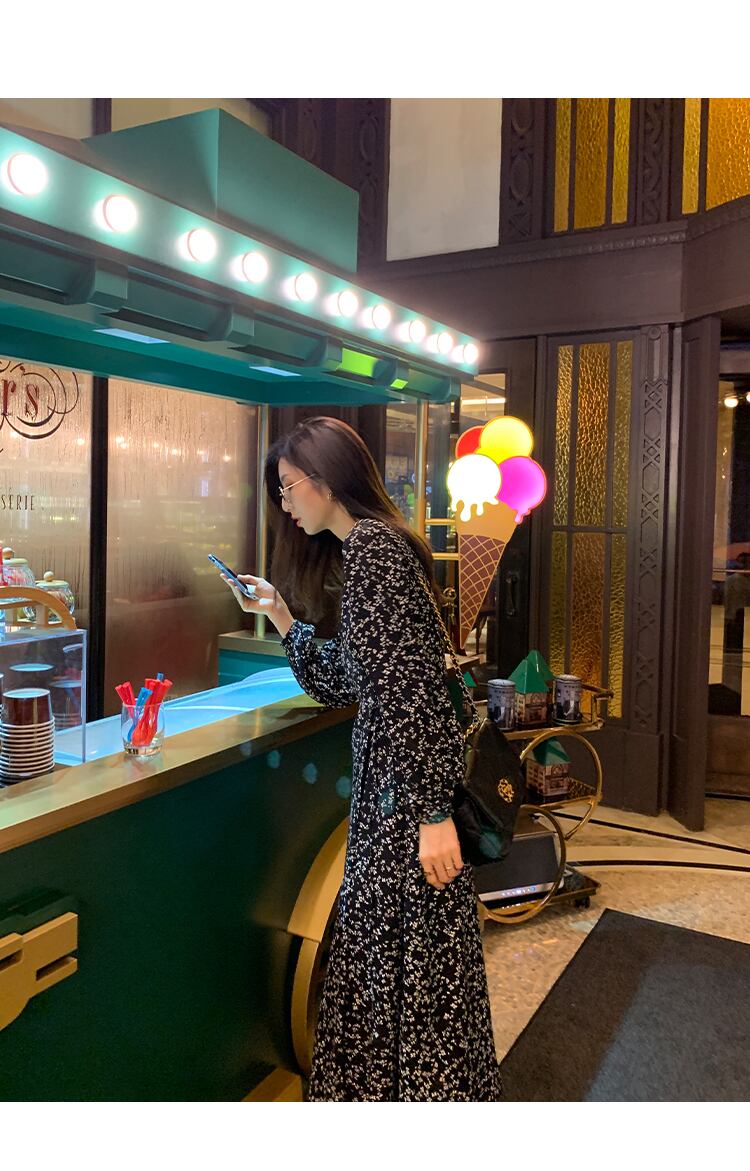 夢見るような花柄が魅力のVネックワンピース。シンプルでありながら、大人可愛いスタイルを演出します。フレンチウエストでウエストラインを美しく引き立て、細身のシルエットが女性らしい雰囲気を出してくれます。着心地も快適で、長いスカート部分が風に揺れると、可憐な姿が一層引き立ちます。このワンピースは、日常のカジュアルスタイルからおしゃれなイベントまで幅広いシーンで活躍してくれる一着です。花柄が人気の秋冬シーズンにぴったりなアイテムですから、お洒落を楽しんでみませんか。