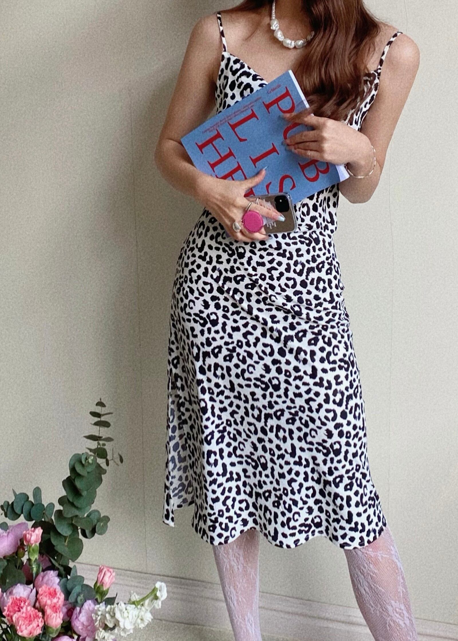 このドレスは、おしゃれで可愛らしいカジュアルスタイルから、上品で大人っぽいコーディネートまで、様々なスタイルにマッチします。ヒョウ柄とサスペンダーがトレンド感を演出し、自分らしいファッションスタイルを表現するのに最適です。