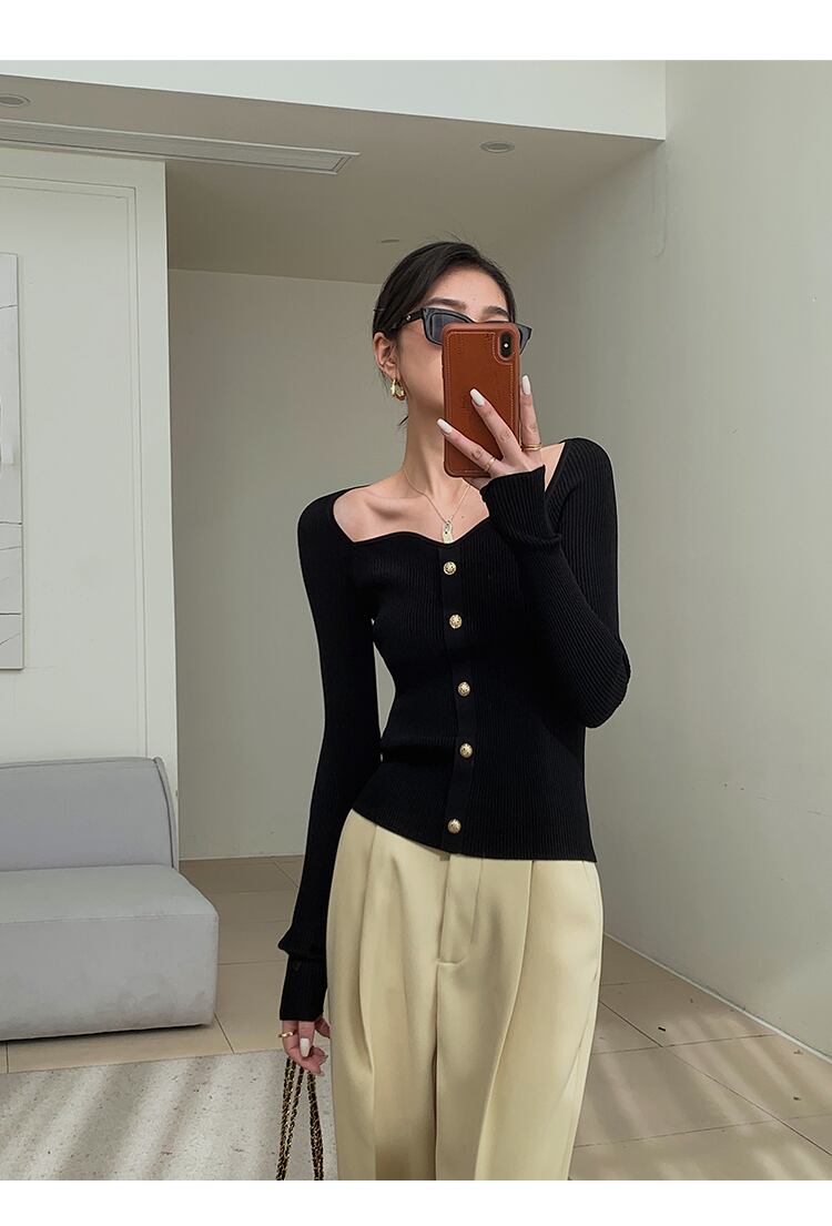 レディース ニット シャツ 女性 秋 冬 スタイル 長袖 スクエアカラー カーディガン トップ ブラック SMLXL トップス 袖あり かわいい 大人可愛い きれいめ シンプル カジュアル 大人 上品 おしゃれ お洒落 大人可愛い 大人女子 キュート 春 夏 秋 10代 20代 30代 レディース 女性用 女の子 通勤 学生 通学 デート お出かけ 女子会 お泊まり 休日 パーティー イベント 旅行 普段使い ファッション コーデ スタイル インスタ映え | ameiro18