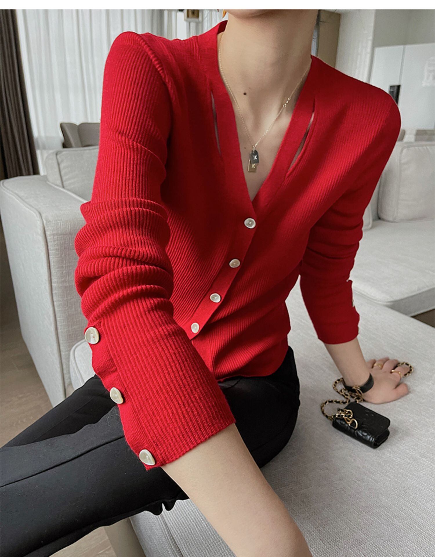 レディース ファッション エレガント カーディガン トップ 秋 冬 女性 スタイル V ネック スリム ボトム シャツ レッド SMLXL トップス 袖あり かわいい 大人可愛い きれいめ シンプル カジュアル 大人 上品 おしゃれ お洒落 大人可愛い 大人女子 キュート 春 夏 秋 10代 20代 30代 レディース 女性用 女の子 通勤 学生 通学 デート お出かけ 女子会 お泊まり 休日 パーティー イベント 旅行 普段使い ファッション コーデ スタイル インスタ映え | ameiro18