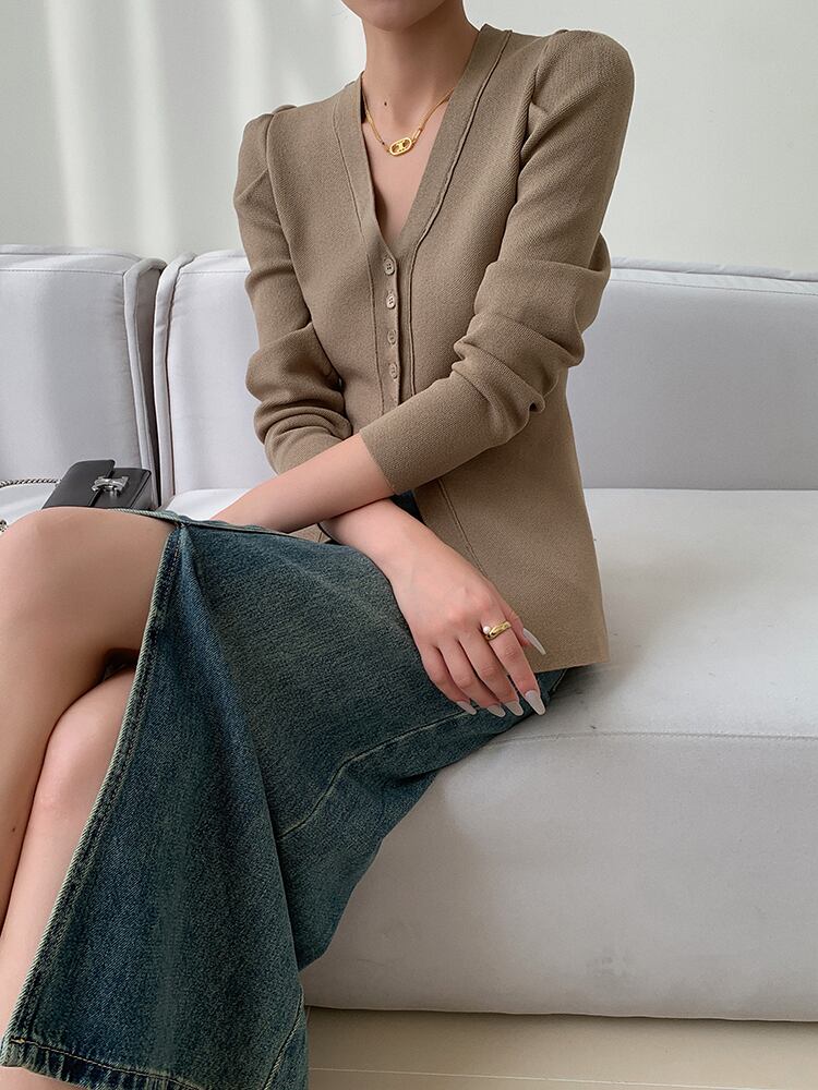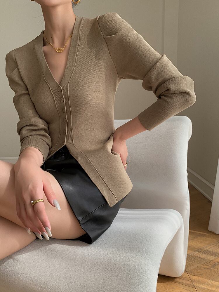 レディース ファッション カラー パフスリーブ ニット カーディガン 女性 秋 冬 スリムフィット ボトム トップ ブラック ブラウン SMLXL トップス かわいい 大人可愛い きれいめ シンプル カジュアル 大人 上品 おしゃれ お洒落 大人可愛い 大人女子 キュート 春 夏 秋 10代 20代 30代 レディース 女性用 女の子 通勤 学生 通学 デート お出かけ 女子会 お泊まり 休日 パーティー イベント 旅行 普段使い ファッション コーデ スタイル インスタ映え 色展開 | ameiro18