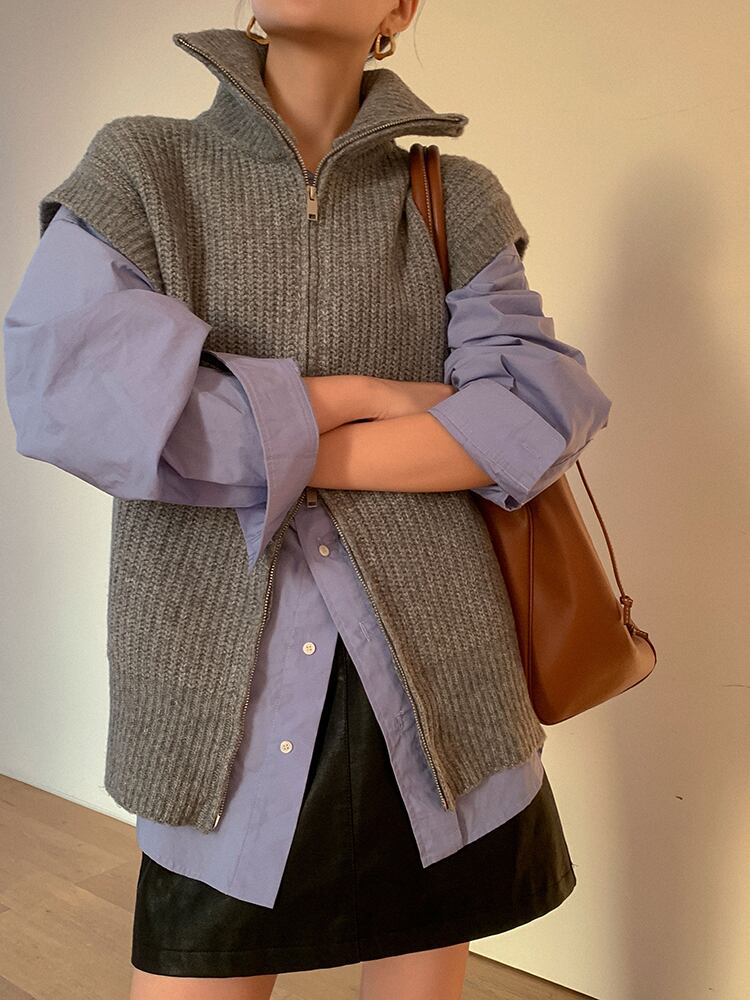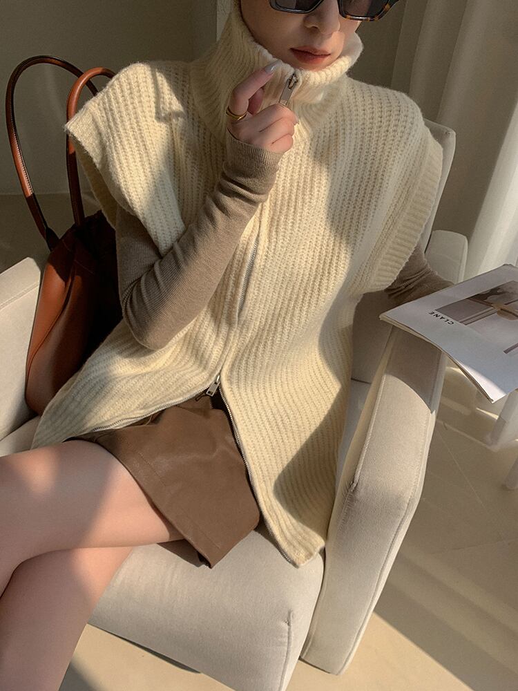 レディース ファッション ニット ベスト 女性 秋 冬 デザイン ダブル ジッパー オールマッチ セーター トレンディ アプリコット グレー SMLXL トップス かわいい 大人可愛い きれいめ シンプル カジュアル 大人 上品 おしゃれ お洒落 大人可愛い 大人女子 キュート 春 夏 秋 10代 20代 30代 レディース 女性用 女の子 通勤 学生 通学 デート お出かけ 女子会 お泊まり 休日 パーティー イベント 旅行 普段使い ファッション コーデ スタイル インスタ映え 色展開