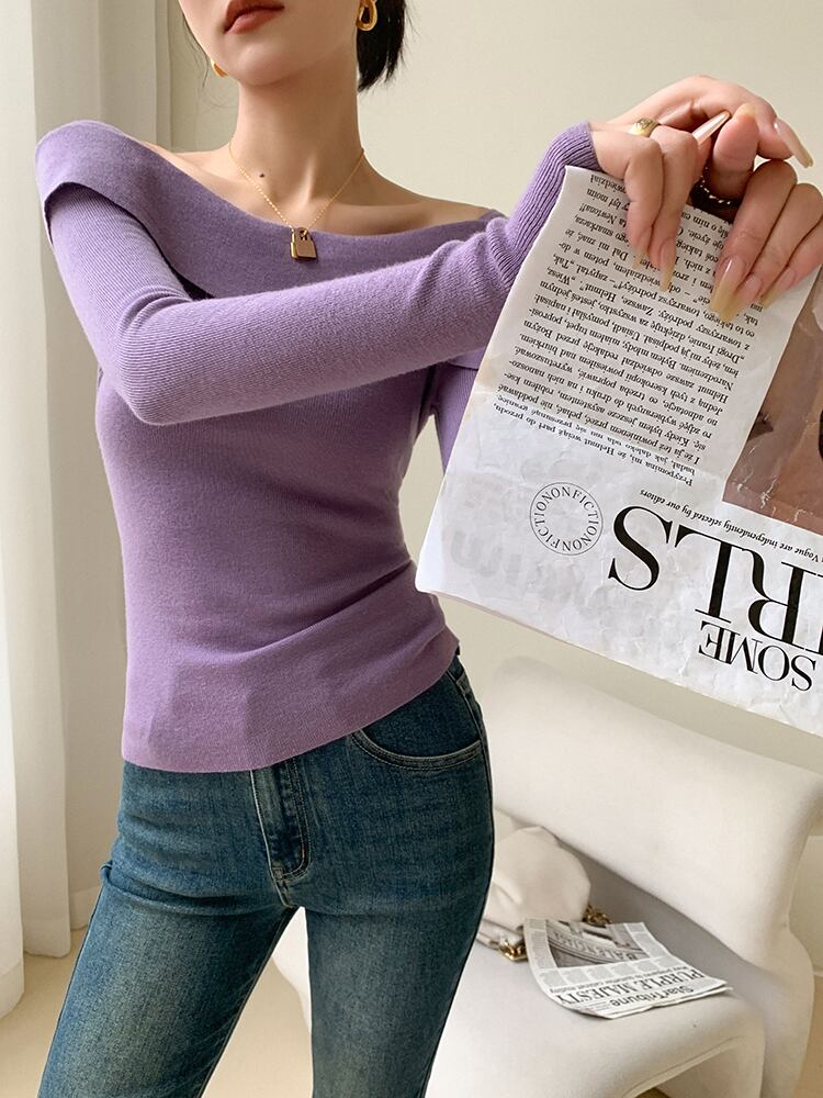 ワンショルダー ニット セーター 女性 秋 冬 タイト フィット ボトム シャツ ホット ガール トップ パープル SMLXL トップス 袖あり かわいい 大人可愛い きれいめ シンプル カジュアル 大人 上品 おしゃれ お洒落 大人可愛い 大人女子 キュート 春 夏 秋 10代 20代 30代 レディース 女性用 女の子 通勤 学生 通学 デート お出かけ 女子会 お泊まり 休日 パーティー イベント 旅行 普段使い ファッション コーデ スタイル インスタ映え