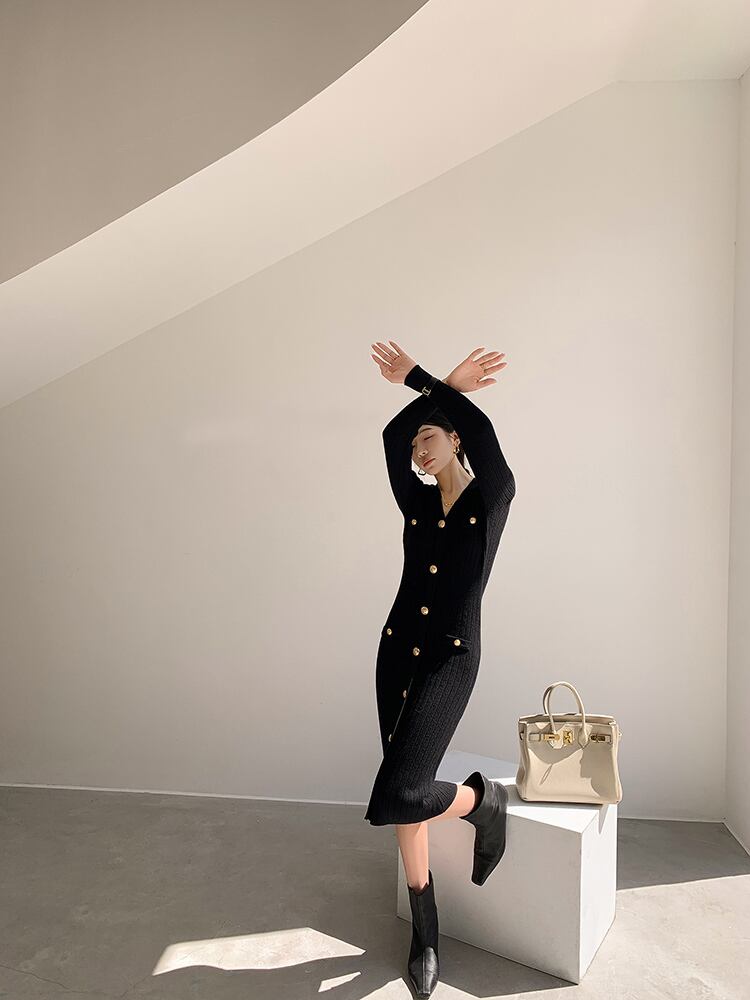 レディー スファッション エレガント V ネック ニット ドレス 女性 秋 ウエスト プルオーバーロングスカート ブラック SML かわいい 大人可愛い きれいめ シンプル カジュアル 大人 上品 おしゃれ お洒落 大人可愛い 大人女子 春 夏 秋 10代 20代 30代 40代 レディース 女性用 女の子 学生 通学 デート お出かけ 女子会 お泊まり 休日 パーティー イベント 旅行 普段使い ファッション コーデ スタイル トレンド 流行 インスタ映え | ameiro18