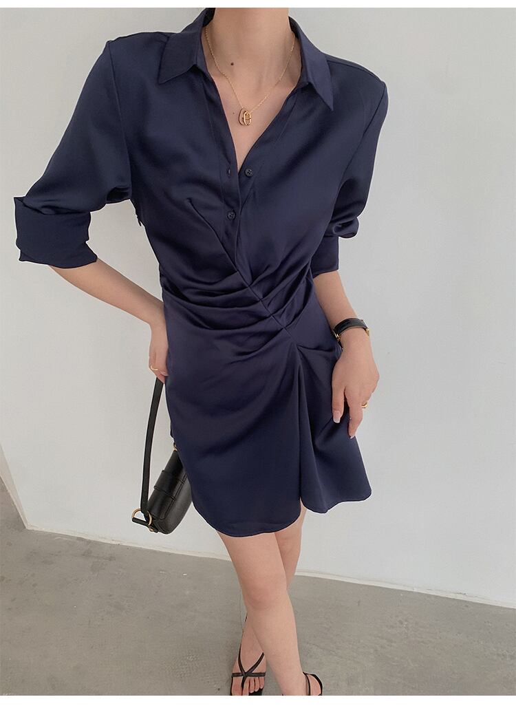 レディース ファッション ワンピース ドレス 女性 秋 長袖 ウエスト V ネック シャツ スカート ネイビー SML ワンピース かわいい 大人可愛い きれいめ シンプル カジュアル 大人 上品 おしゃれ お洒落 大人可愛い 大人女子 春 夏 秋 10代 20代 30代 40代 レディース 女性用 女の子 学生 通学 デート お出かけ 女子会 お泊まり 休日 パーティー イベント 旅行 普段使い ファッション コーデ スタイル トレンド 流行 インスタ映え | ameiro18