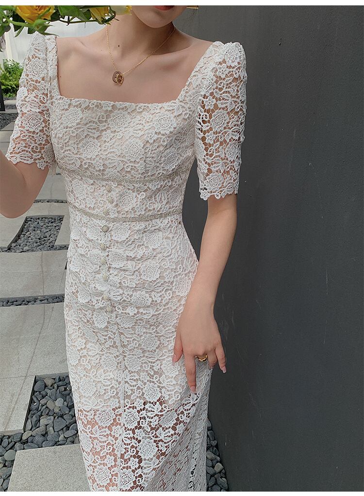 レディース ファッション フレンチ スクエアカラー ドレス 女性 夏 半袖 レース スリット ミドル丈 スカート ホワイト SML かわいい 大人可愛い きれいめ シンプル カジュアル 大人 上品 おしゃれ お洒落 大人可愛い 大人女子 春 夏 秋 10代 20代 30代 40代 レディース 女性用 女の子 学生 通学 デート お出かけ 女子会 お泊まり 休日 パーティー イベント 旅行 普段使い ファッション コーデ スタイル トレンド 流行 インスタ映え