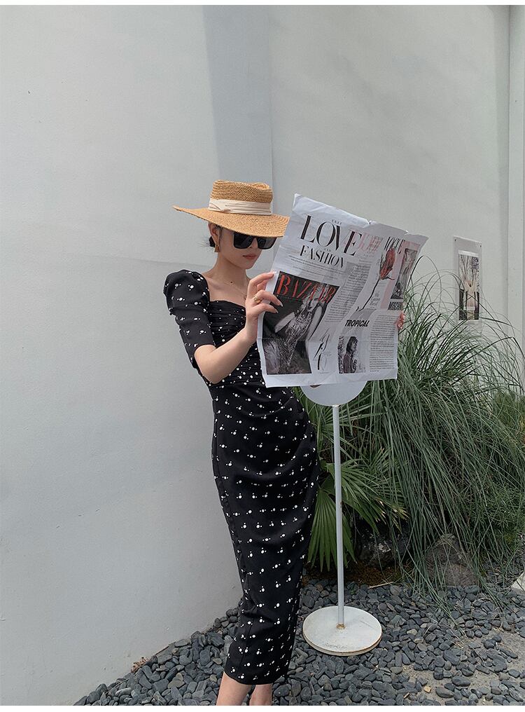 レディース ファッション パフスリーブ 黒 半袖 フレンチ スクエアネック ドレス 女性 夏 花 ミディアム丈 スカート ブラック SML かわいい 大人可愛い きれいめ シンプル カジュアル 大人 上品 おしゃれ お洒落 大人可愛い 大人女子 春 夏 秋 10代 20代 30代 40代 レディース 女性用 女の子 学生 通学 デート お出かけ 女子会 お泊まり 休日 パーティー イベント 旅行 普段使い ファッション コーデ スタイル トレンド 流行 インスタ映え | ameiro18